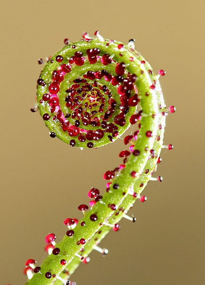 И все же само существование плотоядной флоры кажется оксюмороном, сочетанием несочетаемых свойств. Это создает особенный ореол, таинственный и слегка пугающий. Недаром вымышленным хищным (и даже шагающим) деревьям-триффидам посвящена целая серия фильмов ужасов. Интриговало это противоречие и Чарлза Дарвина. Великий биолог лично исследовал реакции болотной росянки и показал, что ее чувствительные волоски откликаются на прикосновение, захватывая добычу. Прежде эти растения вызывали интерес в основном своей способностью сохранять сверкающие капли «росы» под ярким солнцем. Однако Дарвин продемонстрировал хищный характер росянки и оценил ее экологическую роль: «Так как это растение весьма распространено в некоторых местностях, то число насекомых, ежегодно убиваемых таким способом, должно быть громадно».