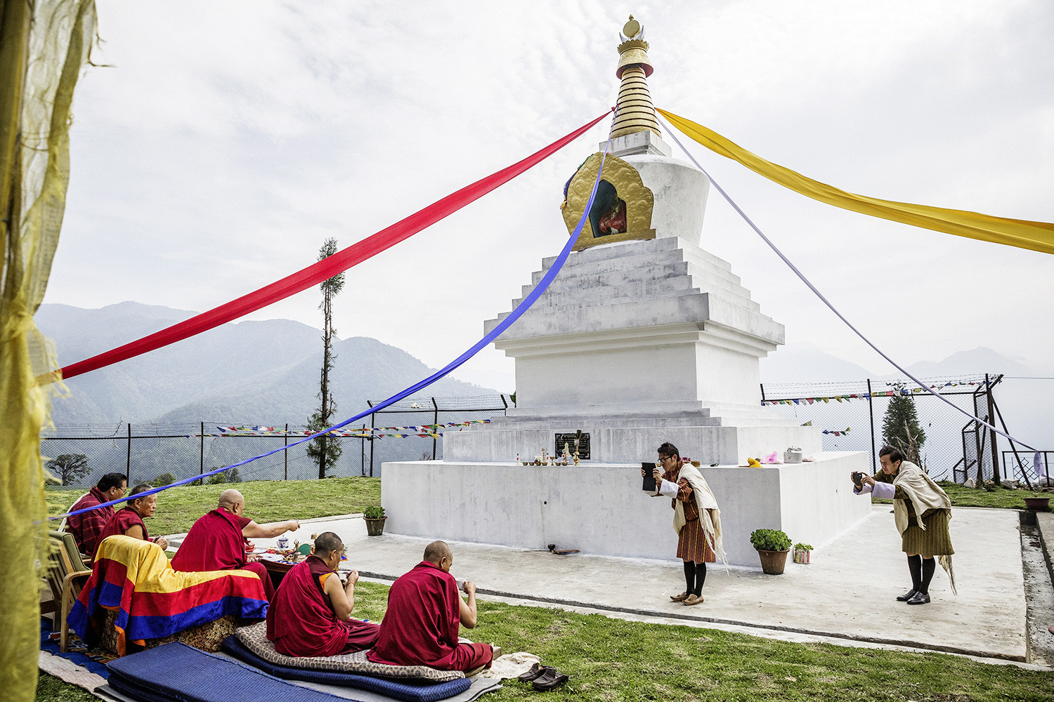 - Учащиеся 5-го класса частной школы Тхимпху молятся перед едой в кафе Музея народного наследия, куда их привели на экскурсию. Несмотря на то что государственные школы в Бутане до 10-го класса бесплатны, многие госслужащие и бизнесмены предпочитают записывать своих детей в частные школы.