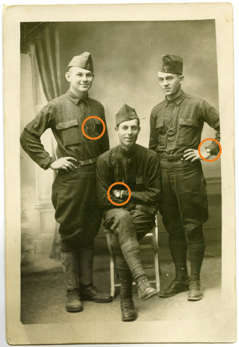 В самый разгар войны в начале 1916 года вышел «Справочник офицера для фронта» (Knowledge for War: Every officer’s handbook for the front), написанный капитаном Бэзилом Чарлзом Лейком, в котором, в частности, приводился список необходимых каждому офицеру вещей. Первый пункт списка: наручные часы с люминесцентной краской и небьющимся стеклом. На втором месте – револьвер. Далее идут бинокль, перископ, компас, блокнот и фляжка.