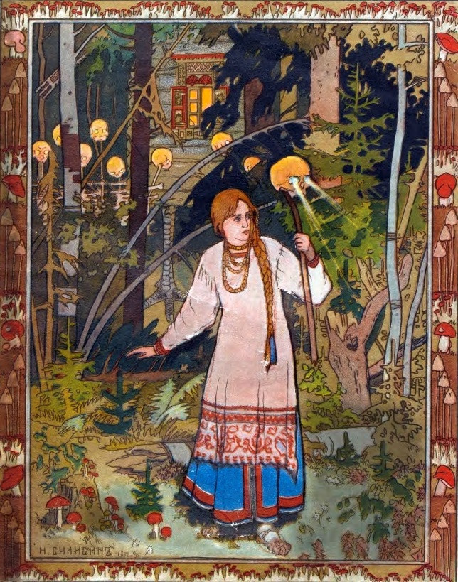 Зимой 1899 года в Санкт-Петербурге открылась выставка Виктора Васнецова, тогда уже признанного мастера живописи на сюжеты русских сказок и былин. Среди экспонатов было эпическое полотно «Богатыри». Билибин был потрясен. «Я увидел у Васнецова то, к чему смутно рвалась и по чему тосковала моя душа», – вспоминал он. Через полгода Билибину впервые довелось попасть в настоящую российскую глушь – в деревню Егны. Первозданная природа, крестьянский быт, бесхитростные рассказы из найденного в сельской читальне сборника «Родная старина» – все казалось художнику возвращением к каким-то давно потерянным истокам. Здесь он сделал множество этюдов в том стиле, который позже станут называть «билибинским», выполнил иллюстрации к сказкам: «Об Иване-царевиче, Жар-птице и о сером волке», «Царевна-лягушка», «Перо Финиста Ясного Сокола», «Василиса Прекрасная». Тонкие книжицы сказок с этими рисунками опубликовала Экспедиция заготовления государственных бумаг, располагавшая одной из лучших типографий страны. Читатели были в восторге.