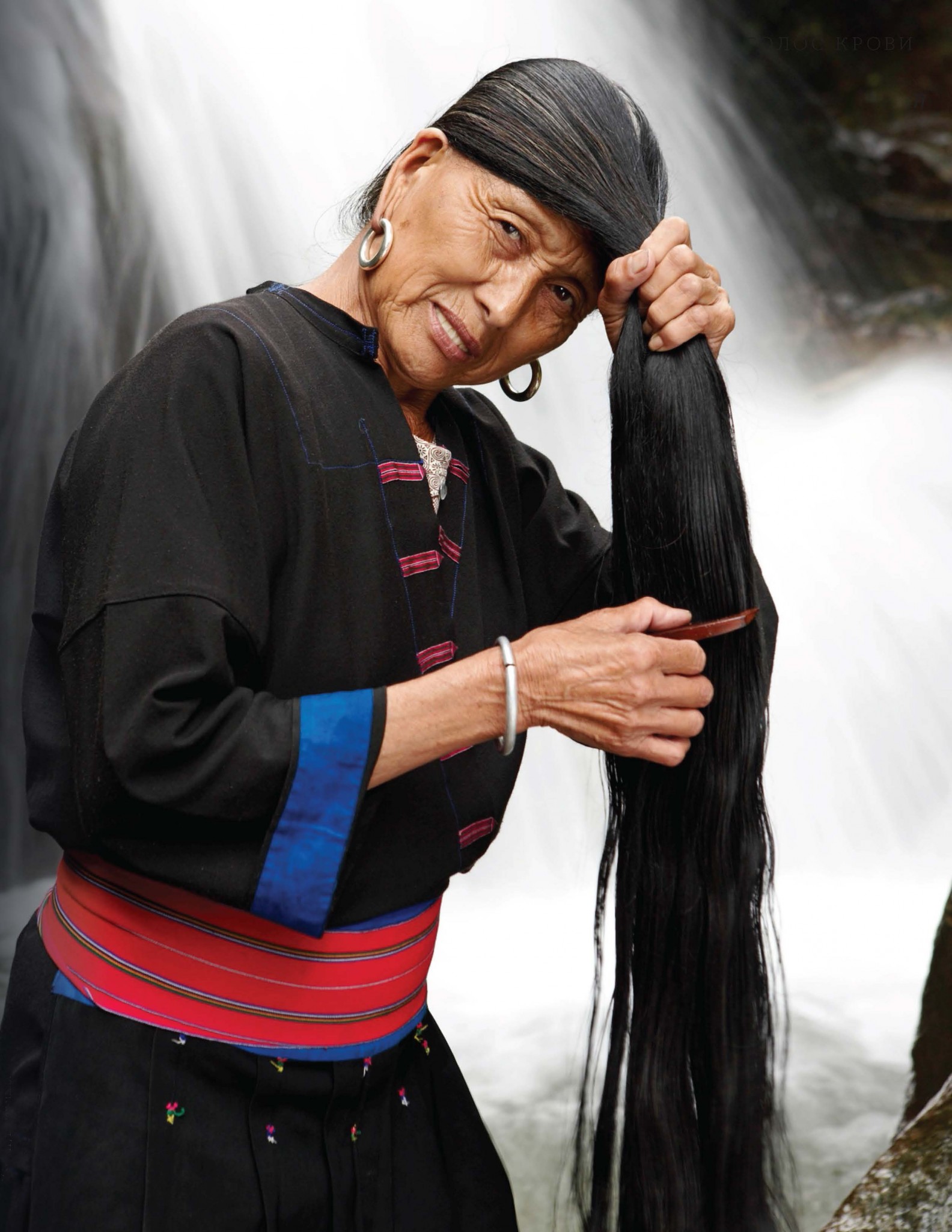 Длина моих волос сейчас почти два метра. У всех женщин в деревне волосы длинные, блестящие и шелковистые, совсем без седины. Наш секрет — особый отвар, рецепт которого мы храним уже несколько тысячелетий. Мы берем рис и промываем его водой. Наш рис особенный: ароматный, клейкий, блестящий. В большом котле кипятим рисовую воду с апельсиновыми шкурками и потом настаиваем от пятнадцати до тридцати дней. Мы наносим отвар на волосы на 20 минут. После этого моем голову в реке Цзиньцзян. Ее чистая вода придает волосам блеск. Потом мы расчесываемся традиционным деревянным гребнем. Выпавшие волоски никогда не выбрасываем и собираем из них пучок, который