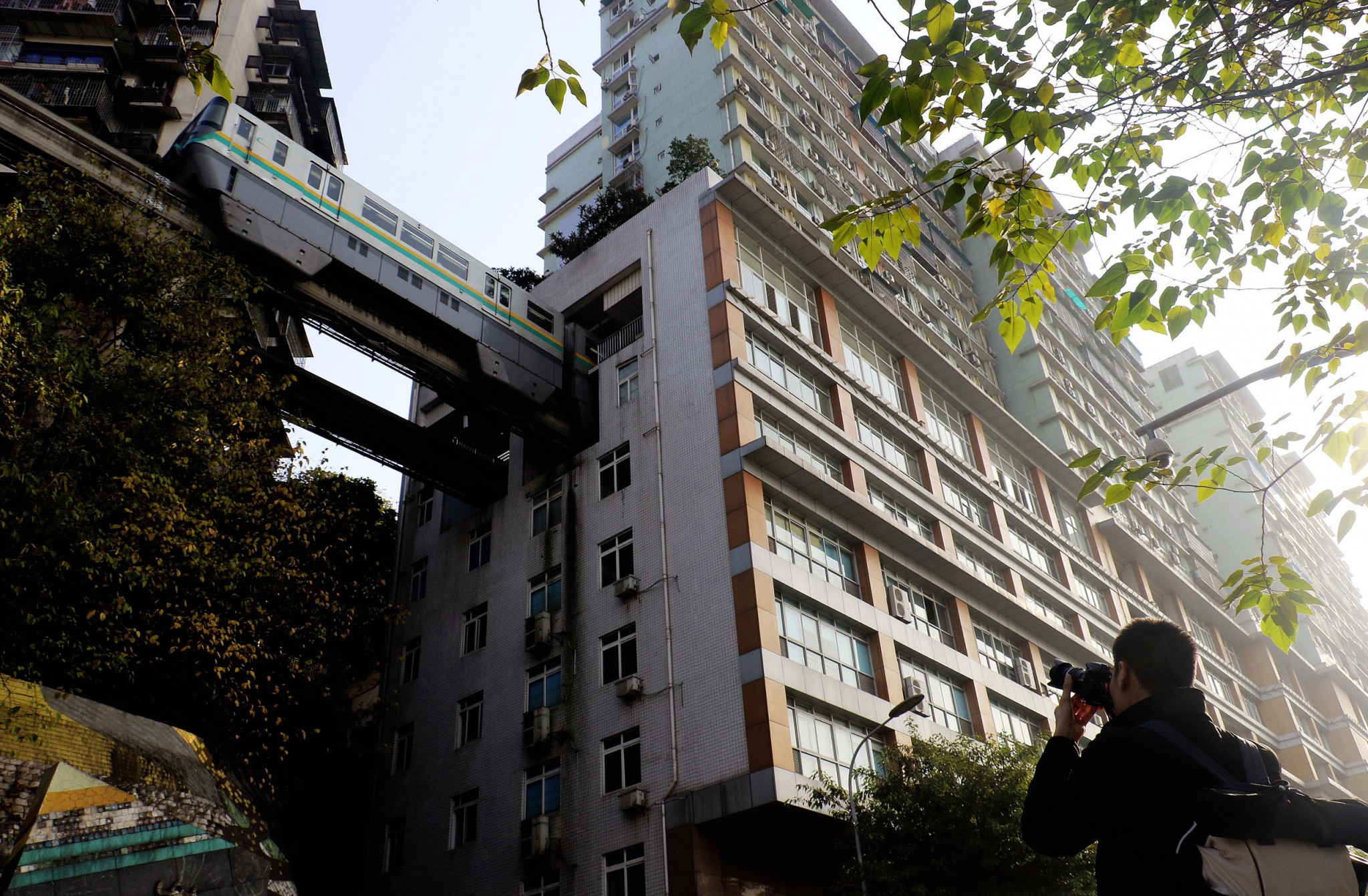 Совместить плотную застройку с железнодорожным сообщением в городе с 30-миллионным населением — та еще задача. Власти города Чунцин нашли компромисс: пустили монорельс через 19-этажное здание. Его жильцам удобно: буквально вышел из кухни — и тут же в вагон, ведь станция Лицзыба находится на уровне 6–8-го этажей. Никакого грохота, по уверениям местных, нет. Благодаря специальному оборудованию поезда шумят не больше, чем стандартная посудомоечная машина.