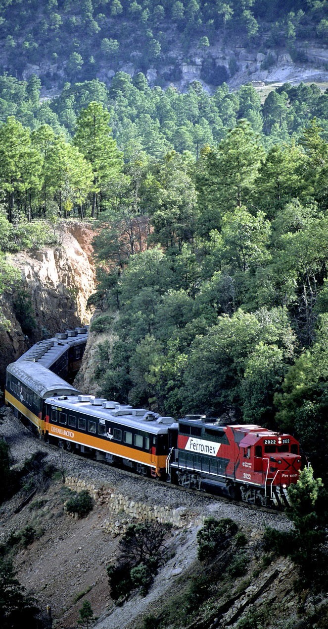 Туристско-пассажирский поезд следует от Чиуауа до Тополобампо, порта Лос-Мочиса. Маршрут вьется в горах Сьерра-Тараумара, проходя через 37 мостов и 86 туннелей. Железная дорога пересекает ветви Медного каньона и даже саму себя, постепенно поднимаясь на высоту 2400 метров над уровнем моря в районе смотровой площадки Дивисадеро.