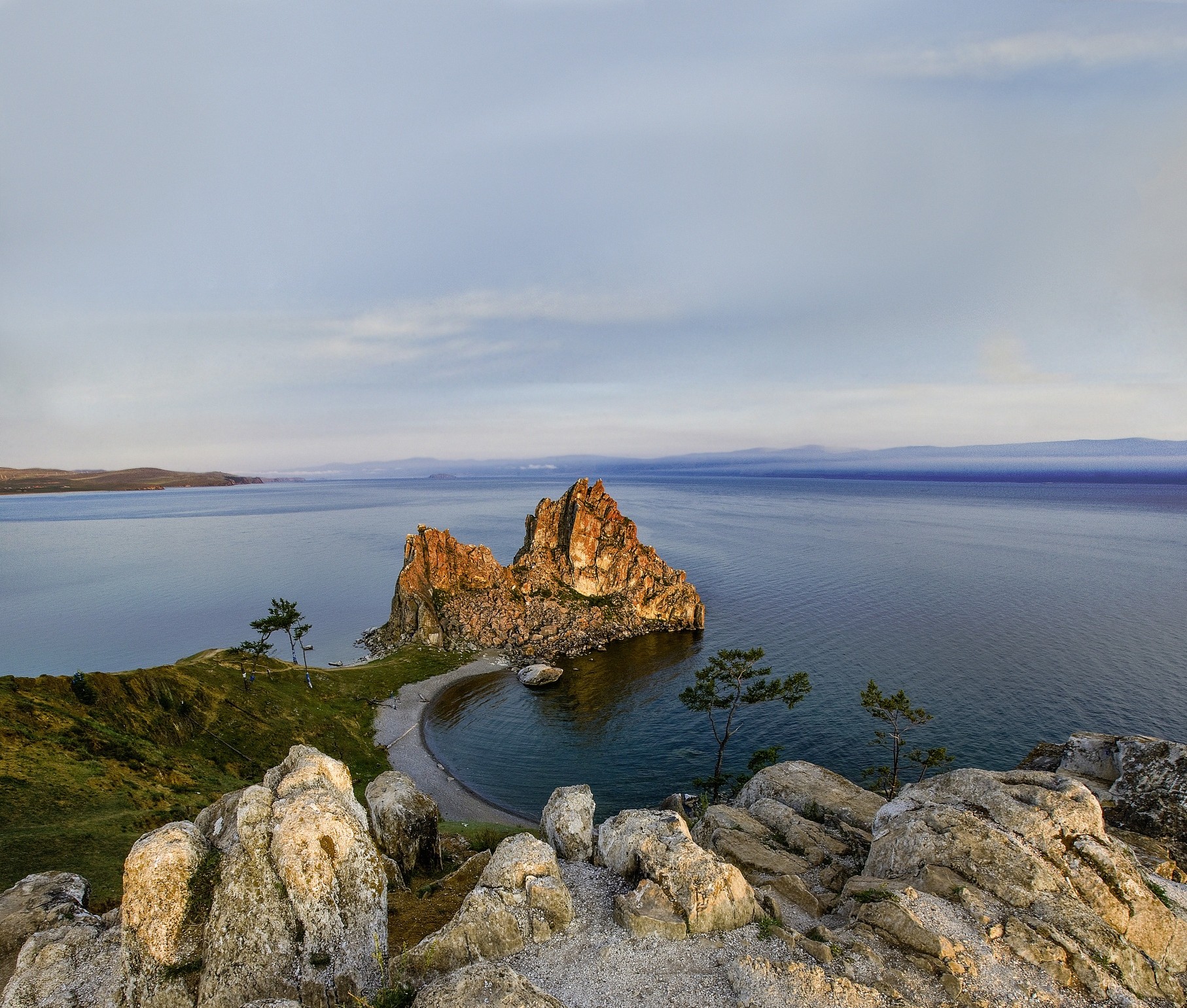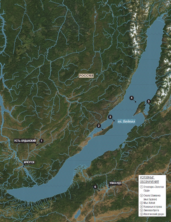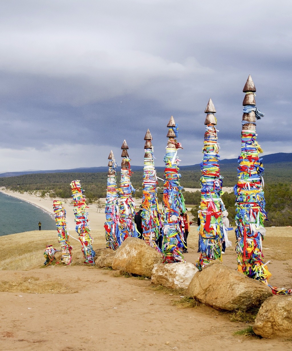 Пришло время вздохнуть свободно: на пароме через Байкал мы отправляемся на остров Ольхон. Один из главных символов этого крупнейшего байкальского острова и сакрального центра бурятского шаманизма — мыс Бурхан, у которого есть и другое название: скала Шаманка. Местная легенда утверждает, что в скале обитает Хан Хутэ-Баабай, дух острова, глава 13 северных хатов (небожителей), сошедших на землю по просьбе людей. В честь хатов на самой высокой точке мыса