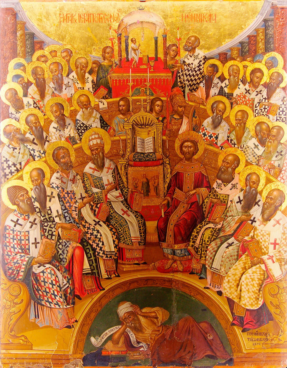 На Вселенских соборах епископы христианского мира вырабатывали общие религиозные истины и правила церковной организации. На первом из них определили, когда праздновать христианскую Пасху, и приняли Символ веры – краткое изложение главных христианских догм. Ключевым стало утверждение о единосущности Бога-Сына Богу-Отцу, а последователи священника Ария, считавшие Сына творением Отца, были объявлены еретиками.
