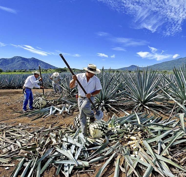 По сухому краснозему на склоне потухшего вулкана с подобающим названием Текила ровными рядами поднимаются тысячи голубых агав. Посреди этого хоть и рукотворного, но все равно открыточного пейзажа работает команда Роберто Хименеса. В джинсах, сапогах и широкополых шляпах химадоры — так в Мексике кличут сборщиков агав — похожи на группу спешившихся ковбоев. Ремесло это в Мексике легендарное и часто семейное, поэтому в поле выходит одновременно несколько поколений: тут и молодняк с небрежной щетиной, и мужчины в расцвете сил с залихватскими усами, и придавленные годами старцы. У каждого в руках коа — палка с округлым, остро заточенным лезвием на конце.
