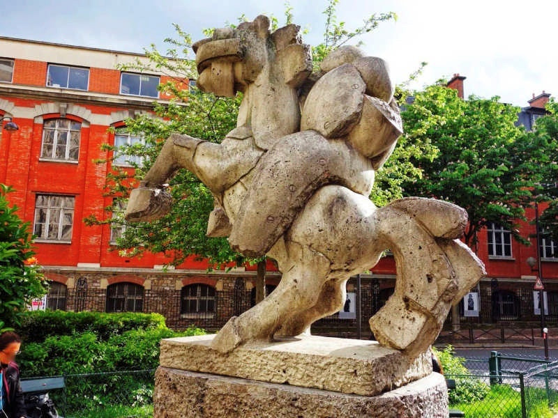 Этот необычный абстрактный памятник украшает собой небольшую площадь Люсьена Герра в 5-м округе Парижа. Композицию из каменных глыб создал в 1980 году известный испанский художник и скульптор Камило Отеро.