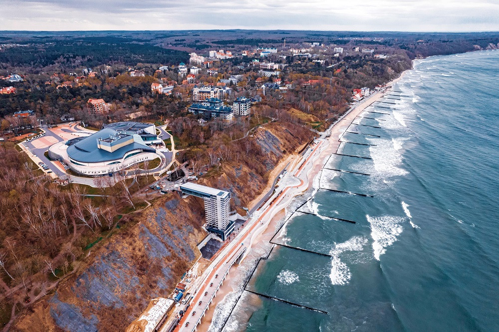 Берег Балтийского моря стал привлекать отдыхающих с начала прошлого века, когда здесь зацвели знаменитые курорты Восточной Пруссии: Кранц (ныне Зеленоградск), Раушен (Светлогорск), Нойкурен (Пионерский), город-сад Георгенсвальде (Отрадное). Сюда ехали и едут за минеральными водами, за лечебными грязями, за золотым прибалтийским загаром, но главное – за видом на море и песчаными пляжами. Защитой берегов здесь заинтересовались даже раньше, чем туризмом: взять, например, двойное назначение променадов. Прогуливаясь по изящному плиточному помосту в Пионерском и по широкой современной набережной в Светлогорске, я оценила их первую, рекреационную функцию. «Конечно, можно гулять по пляжу. Но ведь по променаду можно ходить в туфельках, да еще и во время шторма», – улыбается Басс.