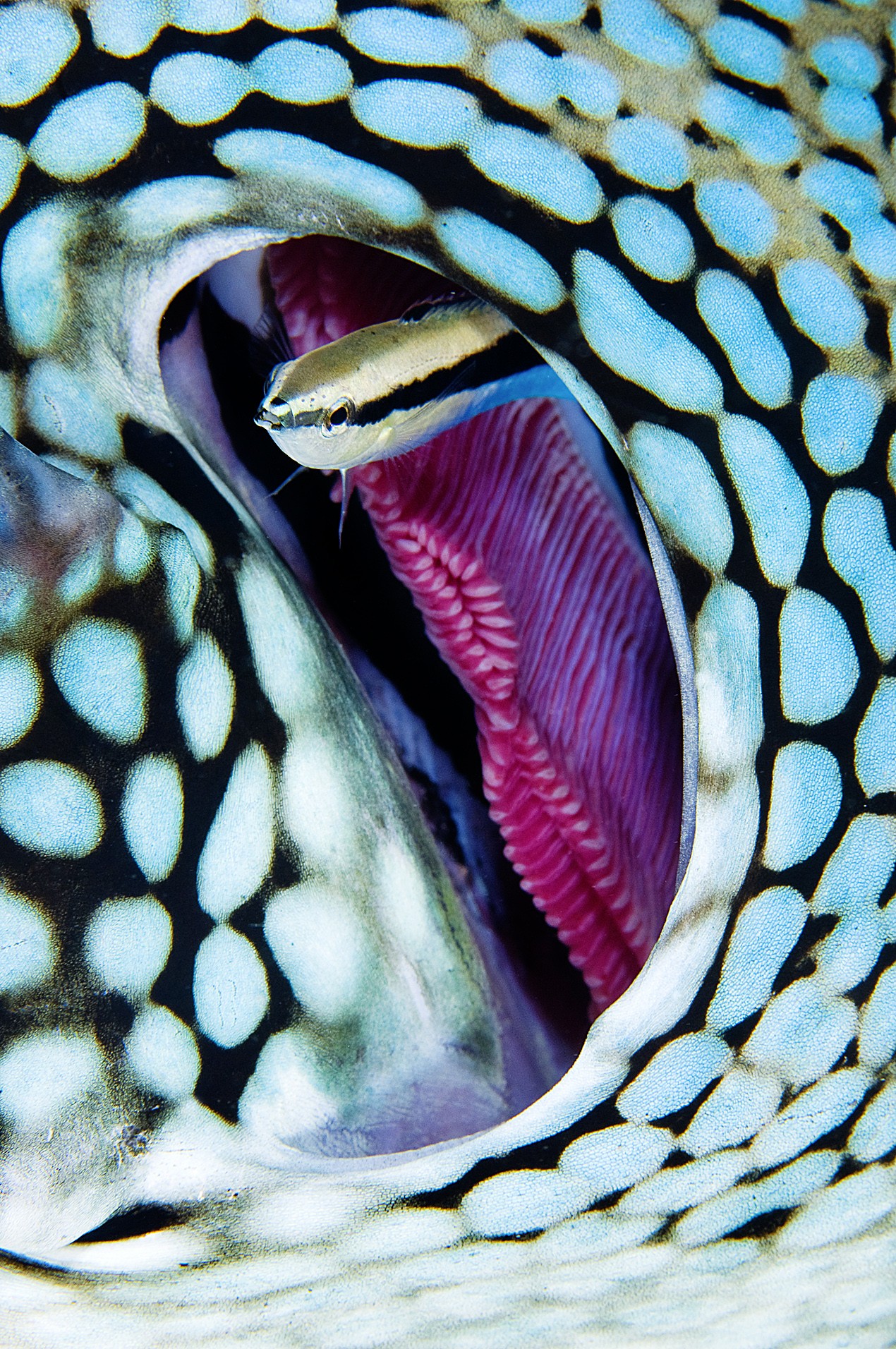 Впрочем, и при таких элегантных маневрах иглобрюх отнюдь не выглядят изящным. Мощная грудь переходит в тяжелую голову с большими выпученными глазами. Зубы, сросшиеся в пластины — по две сверху и снизу, — будто не помещаются во рту, из-за чего кажется, что на морде рыбы застыла некрасивая гримаса (недаром в русскоязычной литературе этих рыб называют еще и скалозубами). Медленно проносит она свою «улыбку», обыскивая дно в поисках пищи. Спешить иглобрюху некуда: его добычу — донных ракообразных, моллюсков, коралловых полипов, иглокожих — сложнее разгрызть, чем догнать. А на случай нападения у рыбы имеется набор очень неприятных сюрпризов.