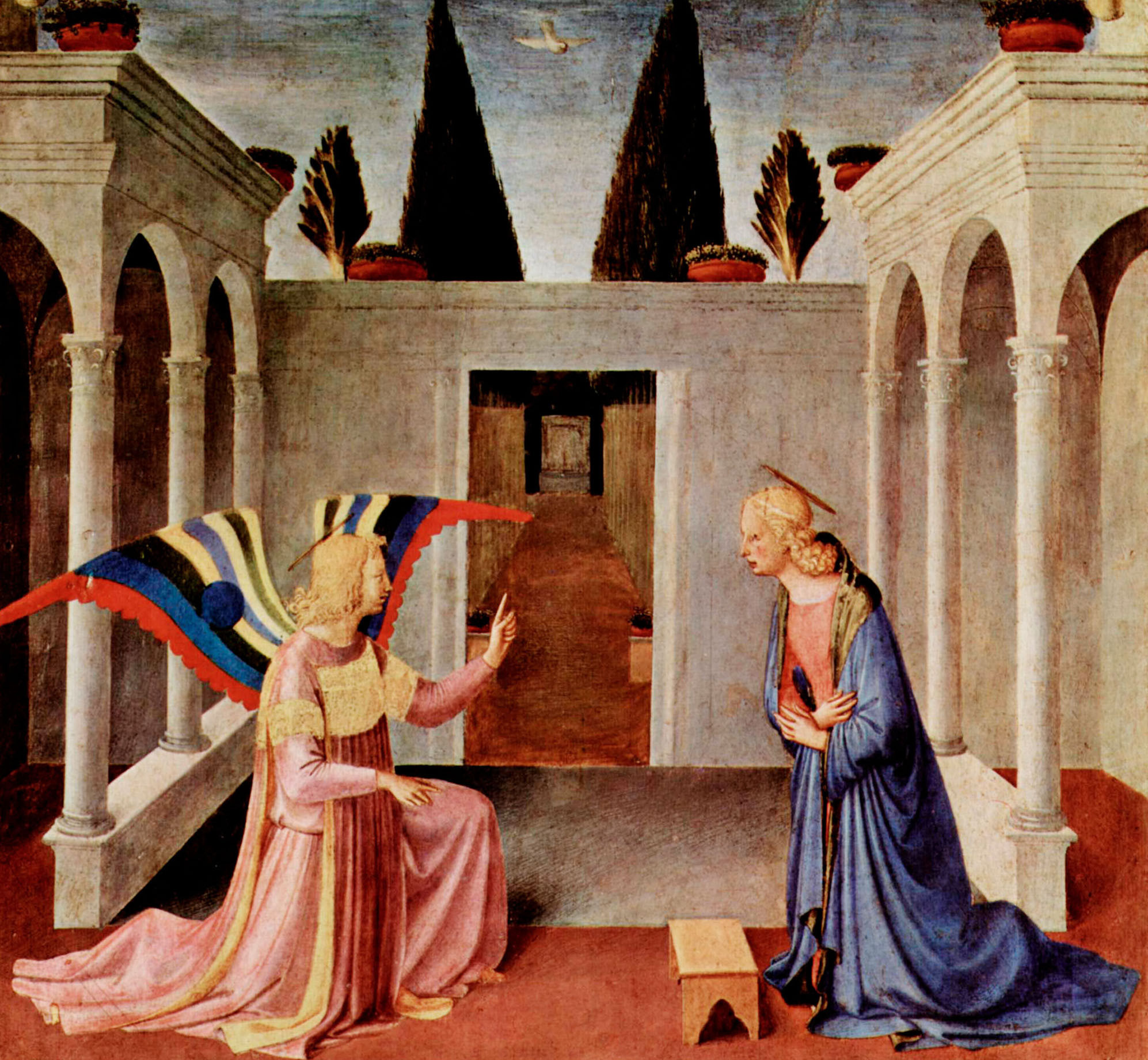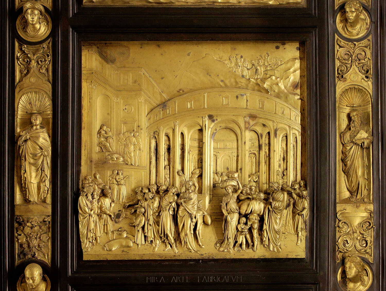 То, как размеры объектов зависят от их удаленности от зрителя, показал в первой трети XV века Филиппо Брунеллески – архитектор и скульптор, создатель купола флорентийского собора Санта-Мария-дель-Фьоре. Брунеллески применил линейную перспективу в двух написанных им видах Флоренции. Увы, картины не сохранились. А принцип построения линейной перспективы объяснил вскоре другой архитектор, Леон Баттиста Альберти, в «Трактате о живописи» 1435 года. Он уподобил плоскость картины сечению «зрительной пирамиды», где все параллельные линии, уходящие в глубину, изображаются сходящимися в одной точке на линии горизонта. Изыскания этих архитекторов, давшие искусству логику, которую мог освоить каждый, немедленно взяли на вооружение скульпторы и живописцы: Донателло (друг Брунеллески) – в рельефе «Святой Георгий и дракон», Лоренцо Гиберти (соперник Брунеллески) – в рельефах дверей Флорентийского баптистерия, а Мазаччо и Анджелико – в живописи.