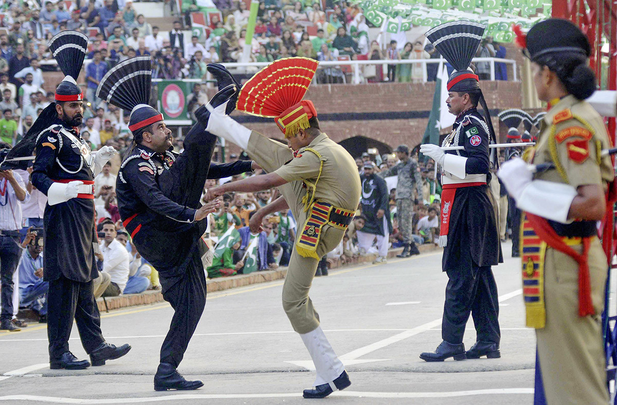 «Славься, мать, славься!» – раздается гул с многоцветных трибун, забитых людьми в праздничных одеждах. Каждый вечер на закате здесь начинается красочное шоу закрытия границы между Индией и Пакистаном. Обозначенная кованым забором, она проходит по разделенному в 1947 году штату Пенджаб. В районе 17 часов на трибуны стягивается нарядный народ. В основном это туристы из самой Индии, приехавшие в Амритсар в святыню сикхов – Золотой храм. Для местных закрытие границы – что-то вроде матча по крикету, большой свадьбы и религиозной процессии вместе взятых. Женщины наряжаются в лучшие сари и навешивают на себя все золотые украшения (или копии золотых – кому что по карману), мужчины облачаются в свежевыглаженные рубашки – народ выходит себя показать и на людей посмотреть. Для иностранцев – своя трибуна, прямо около границы. Главные герои шоу – статные усатые пограничники. На головах у них тюрбаны с «петушиным гребнем». Со стороны Индии – воины в красных тюрбанах, со стороны Пакистана – в черных. По обе стороны границы они демонстрируют искусство строевой подготовки. Задача – маршировать, задирая ногу вверх как можно выше. Потом начинается батл: бравые погранцы какой страны, маршируя, состроят более грозную гримасу и выше поднимут ногу. Растяжка у парней отличная – ноги взмывают вверх практически под углом в 180 градусов. Индийская толпа задыхается в экстазе: «Хиндустан Зиндабар!» (Великий Индостан!). С пакистанской стороны доносится куда более скромное: «Пакистан Зиндабар!» – на той стороне гораздо меньше людей. После батла пограничники пожимают друг другу руки и ворота снова закрываются. Шоу окончено, и народ расходится праздно шататься, жевать попкорн или ужинать в уличных ресторанах.
