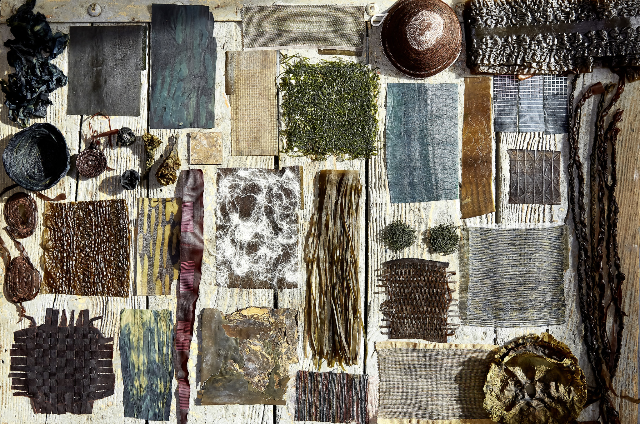 Каждого, кто входит в мастерскую Виолен Бюэ в бретонском приморском городке Оре, сразу же обволакивает сладковатый йодистый запах. Это сушатся водоросли – главный материал, с которым работает Виолен. После сушки она их красит, сшивает, сплетает, прессует, набивает и придает жесткую форму, покрывает тиснением или гравировкой. В целом использует около десятка техник, которые позволяют создать из водорослей самые разные изделия: от домашнего текстиля до платьев Haute Couture и объектов искусства.