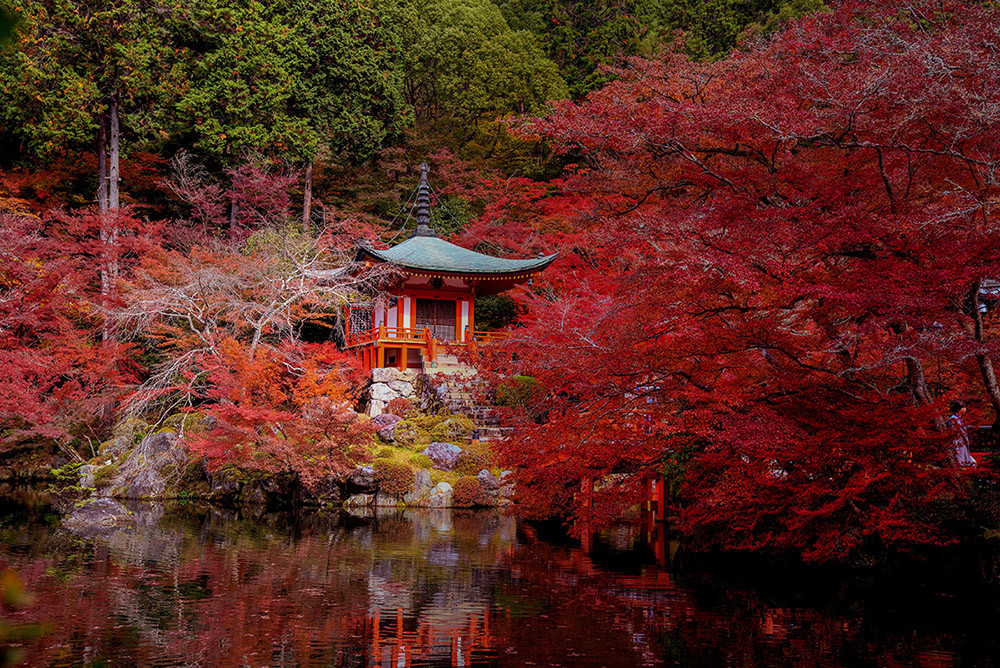 В этот момент тропинка вывела нас к большой кленовой роще, увидев которую, я застыла в изумлении. Каждый отдельный листочек, нежно трепетавший на ветру, казалось, был вырезан рукой искусного мастера. Но больше всего поражали оттенки багряного цвета – они были настолько чистыми и яркими, что казались нереальными. Созерцание алых момидзи вызывало ощущение соприкосновения с чем-то нездешним и пробуждало необыкновенный душевный подъем. Это был подлинный триумф красоты. В этот момент я впервые поняла, почему здесь по сей день сохраняют веру в духов природы.