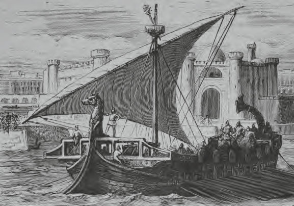 Спустя несколько веков римляне, путешествовавшие, торговавшие и воевавшие по морям не меньше греков, начали строить парусно-гребные суда еще больших размеров. Их квинквиремы (конструкцию которых они позаимствовали у своих заклятых врагов-карфагенян) имели уже пять рядов весел – до 25 в один ряд. Водоизмещение – более 200 тонн, длина – 45 метров, ширина – 6 метров, осадка – 2,5 метра, экипаж – около 250 человек. Число оснащенных парусами мачт увеличилось до двух. Впрочем, вздымаемые на этих мачтах прямые паруса рассматривались скорее в качестве вспомогательного движителя и применялись только при попутных ветрах. Искусство движения в галфвинд и бейдевинд и хождения переменными галсами человечество освоит позже.