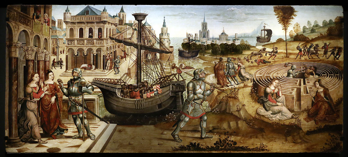 Согласно древнегреческому мифу, лабиринт выстроил для критского царя Миноса хитроумный мастер Дедал. Дворец, куда легко было войти, но откуда было почти невозможно выйти, стал тюрьмой для Минотавра – чудовища с головой быка – и тех несчастных, которых отправляли ему на растерзание. Сын афинского царя Тесей добровольно отплыл на Крит с группой молодежи, посланной туда в качестве дани. Тесей вошел в лабиринт, убил Минотавра и нашел путь назад, поскольку заблаговременно закрепил у входа нить, которую ему дала влюбленная Ариадна, дочь Миноса. Возможно, легенду породили вереницы комнат и запутанные коридоры реально существовавшего дворца критских царей в Кноссе – по крайней мере, так предположили археологи, откопавшие его в начале XX века. Так или иначе, но архетипичный образ лабиринта в Античном мире ассоциировался с Критом.