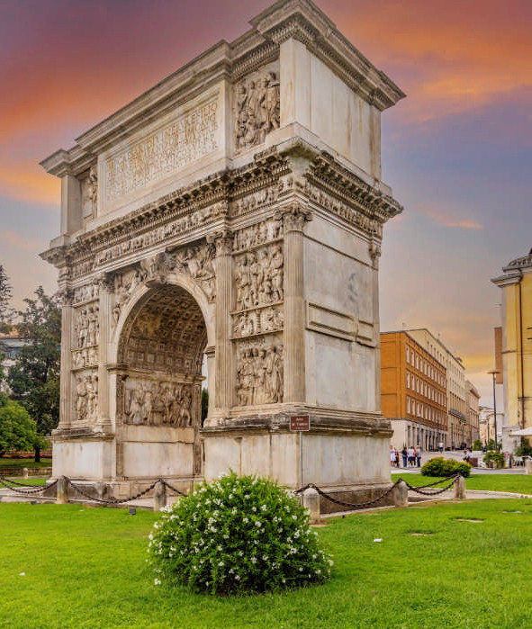Беневенто – один из древнейших городов Италии; по легенде, его основал сын Одиссея. Название изначально звучало как «Малоэнт» и указывало на обилие плодов или овечьих стад. Но римляне услышали это слово как «Малевентум», то есть «дурной ветер» или «дурное событие». В те времена, когда считалось, что болезни возникают из-за дурного воздуха, подобное название надежно отпугивало римских поселенцев. Однако город располагался в стратегически важной точке, и Риму было необходимо контролировать его. Так что в 268 году до н. э. они все же решили организовать здесь колонию и, чтобы избавить его от дурной славы, переименовали в Беневентум – «хороший ветер» или «хорошее событие». Хорошее для римлян событие здесь и правда произошло: за семь лет до этого именно под Малевентумом они одержали верх над опасным противником – греческим царем Пирром. По всей видимости, переименование сработало. В новую колонию хлынул поток переселенцев, и Беневентум стал надежной опорой римского владычества.