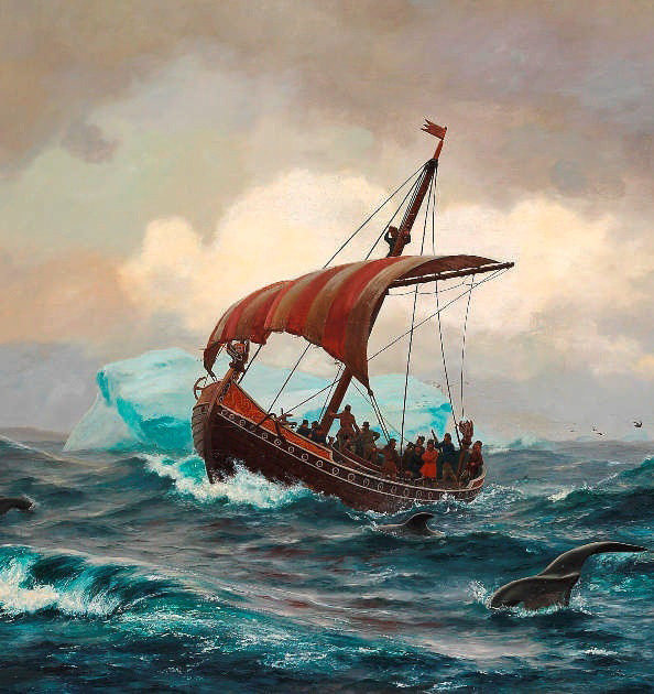 Нельзя сказать, что Гренландия была неизвестна до Эйрика Рыжего, викинга, которого считают ее первооткрывателем. В хорошую погоду ее можно было разглядеть с вершин исландских гор, к тому же, по некоторым сведениям, норвежцы туда плавали и раньше. Но именно Эйрик Рыжий дал Гренландии удачное имя и призвал исландцев переселяться в новую страну. Сам он попал туда после того, как был изгнан из Исландии за убийства. Эйрик отправился в долгое плавание вдоль берегов громадного острова, который и назвал Гренландией – «Зеленой страной». Климат в Х веке был мягче, чем сейчас, и некоторые исследователи считают, что мореход не очень погрешил против истины: на юге Гренландии действительно были обширные зеленые пастбища. Однако средневековая «Книга исландцев» утверждает, что целью Эйрика было дать «благоприятное имя», чтобы «убедить переселенцев отправиться туда».
