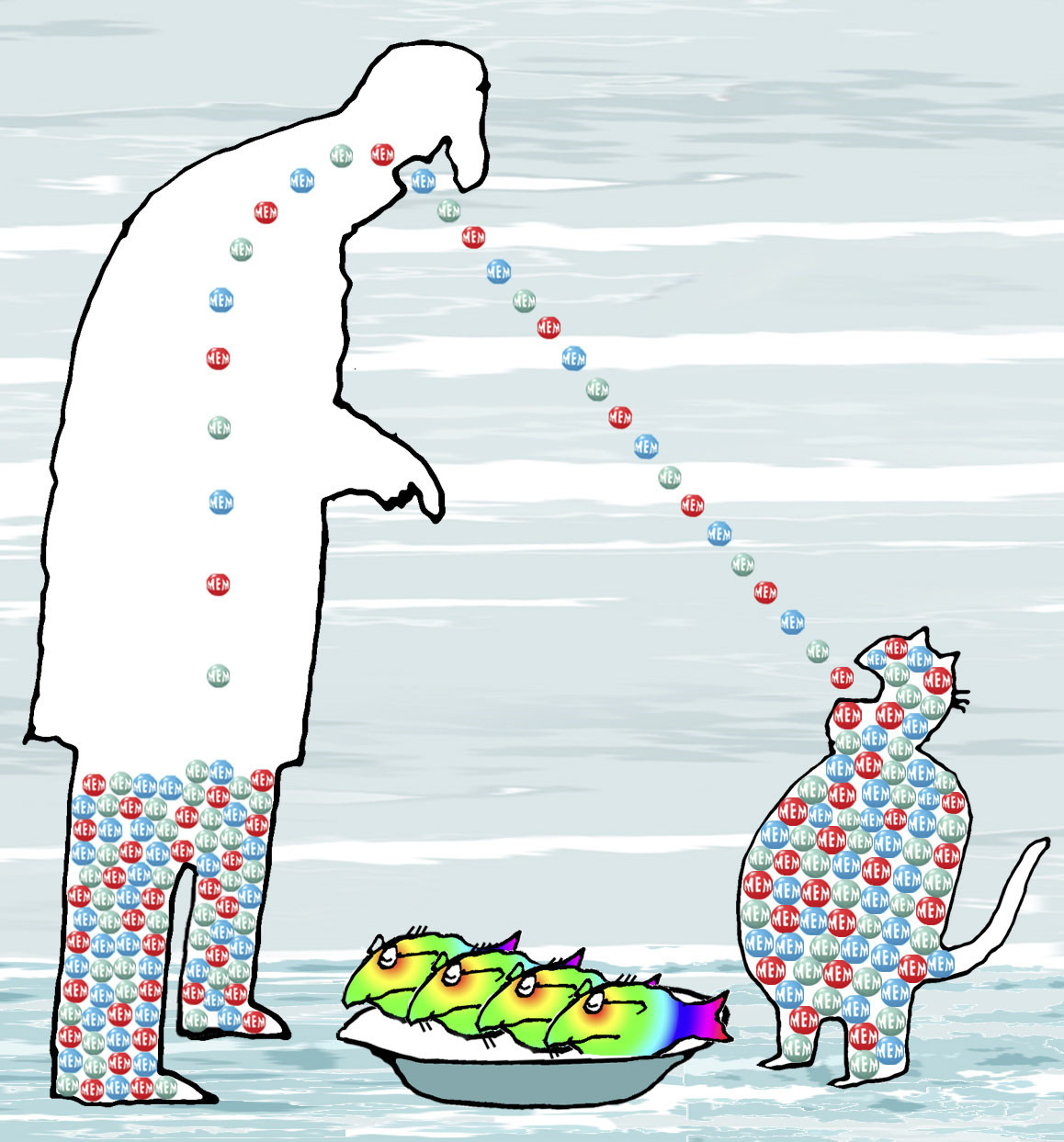 Биолог понимал этот термин очень широко. «Примерами мемов, – пишет Докинз, – служат мелодии, идеи, модные словечки и выражения, способы варки похлебки или сооружения арок». Одним словом, все, что может быть передано от человека к человеку в процессе общения. Мода на винтажные вещи? Мем! Стереотип «успешные люди покупают телефон с яблочком»? Мем! Научная идея, бытовой «лайфхак», жаргонное словечко, анекдот, детская считалочка, крылатая фраза? Ну вы поняли. И конечно, добавим мы сегодня, смешные картинки в Интернете. Как же без них?!