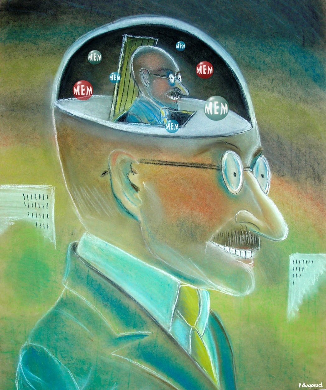 Идею, что культурная эволюция похожа на биологическую, высказал биолог Ричард Докинз в книге «Эгоистичный ген» (1976 г.). Он же придумал словечко «мем» для обозначения информационного объекта, способного к размножению, мутациям и, следовательно, эволюции. В этом слове удачно соединились древнегреческое μίμησις (подобие, воспроизведение, подражание), латинское memoria (память) и даже французское même (такой же, одинаковый). А главное достоинство термина в том, что он очень короткий, не то что какая-нибудь «дезоксирибонуклеиновая кислота». В общем, слово «мем» оказалось успешным мемом, если его слышали даже те, кто знать не знает ни о каком Докинзе.