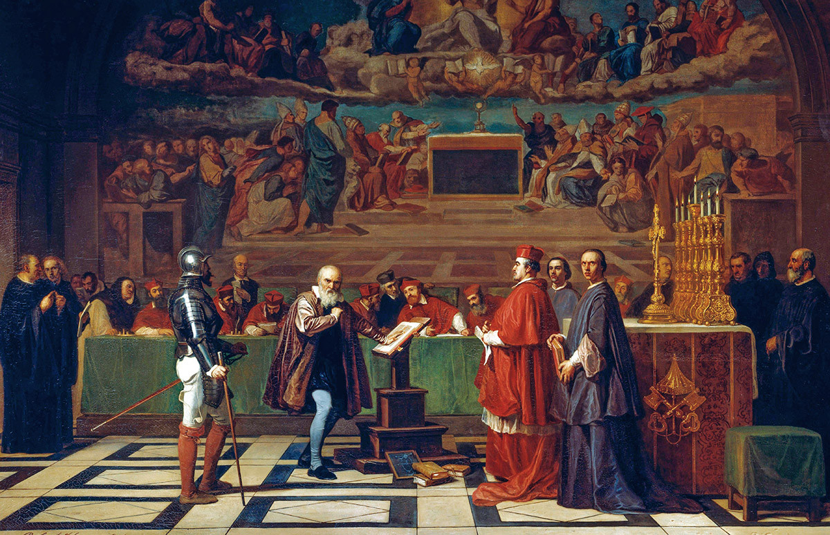 Галилей вслед за Коперником утверждал, что Земля не была неподвижным центром Вселенной, а обращалась вокруг своей оси и Солнца. Инквизиция принудила его отречься от этих взглядов. Фраза Eppur si muove (дословно: «и все-таки она движется»), якобы произнесенная ученым после суда, должна была означать, что, несмотря на формальное отречение, он оставался убежденным в своей правоте. Но ни современники Галилея, ни ранние биографы не упоминают о таких его словах. Они появляются в книге итальянца Джузеппе Баретти только через сто с лишним лет после Телескоп Галилео, смерти ученого.
