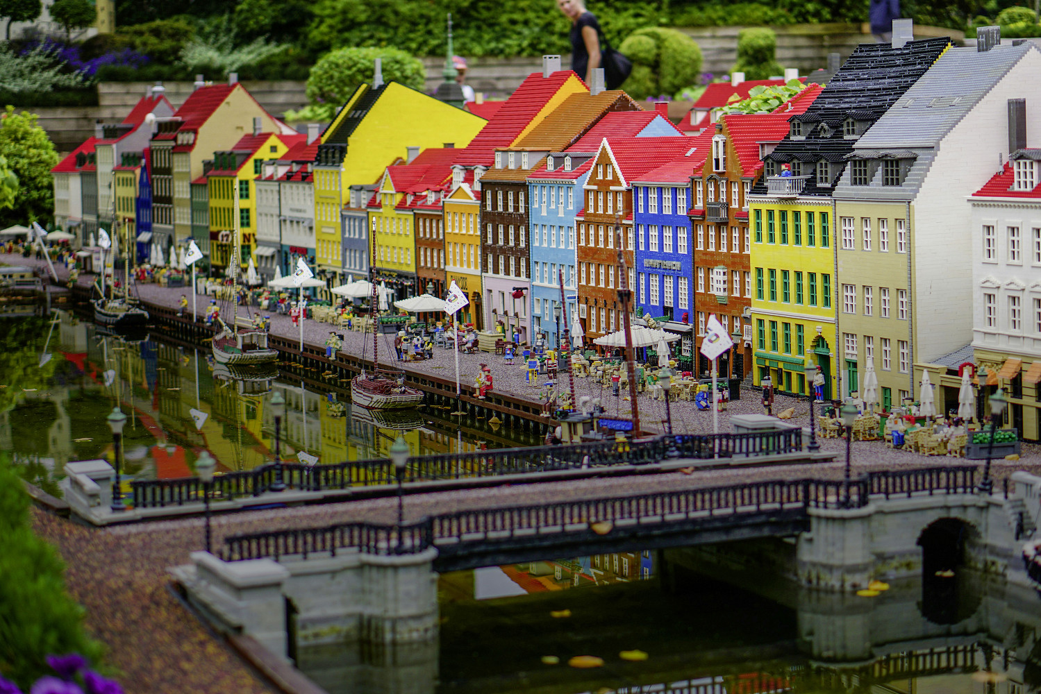 Название «Миниленд» переводится как «земля в миниатюре» – и здесь это в первую очередь земля датская (а также до некоторой степени датская вода). Если вы в Дании ненадолго и у вас нет времени ее как следует объехать – в «Леголенде» можно обойти всю страну пешком. На вполне обозримой площади расположились разнообразные датские достопримечательности, собранные исключительно из «Лего», в масштабе 1:20. На сопроводительных табличках указано, сколько деталей ушло на каждую модель, и счет идет на сотни тысяч. Так, на центр старейшего в стране города Рибе ушло 553 000 деталей. Из 900 000 построен королевский дворец Амалиенборг, резиденция датских монархов. На замки Розенборг и Шакенборг ушло 147000 и 150 000 деталей соответственно. Из 175 000 деталей построен старейший в Дании паром Броен, некогда ходивший по проливу, через который сейчас сооружен мост. А самая большая конструкция – пассажирский терминал находящегося буквально за забором Биллуннского аэропорта: целых 952 000 деталей!