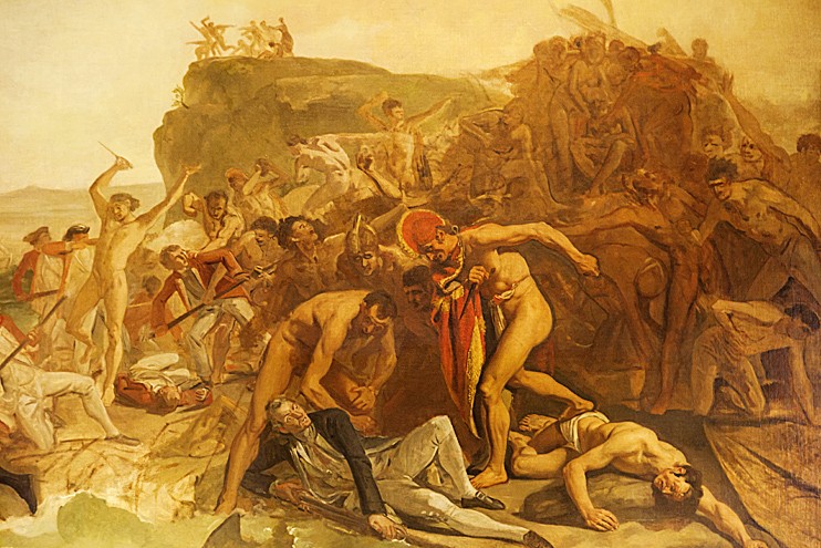 НЕТ. Джеймс Кук погиб 14 февраля 1779 года на Гавайях. 18 января 1778-го он открыл эти острова, которые тогда назвал Сандвичевыми. Год спустя, когда корабли Кука, совершавшего третье кругосветное путешествие, стояли на якоре в бухте Кеалакекуа, случился конфликт с туземцами, из-за того что те украли баркас. С группой вооруженных морских пехотинцев Кук сошел на берег, намереваясь взять вождя в заложники. Началась схватка, и капитана буквально растерзали на куски. Чуть позже аборигены вернули новому капитану Кларку некоторые части тела Кука. Гавайцы, однако, не были каннибалами, в отличие от маори, которых Кук встретил во время второго кругосветного путешествия у берегов Новой Зеландии. Тогда матросы с корабля экспедиции действительно были убиты и съедены туземцами.