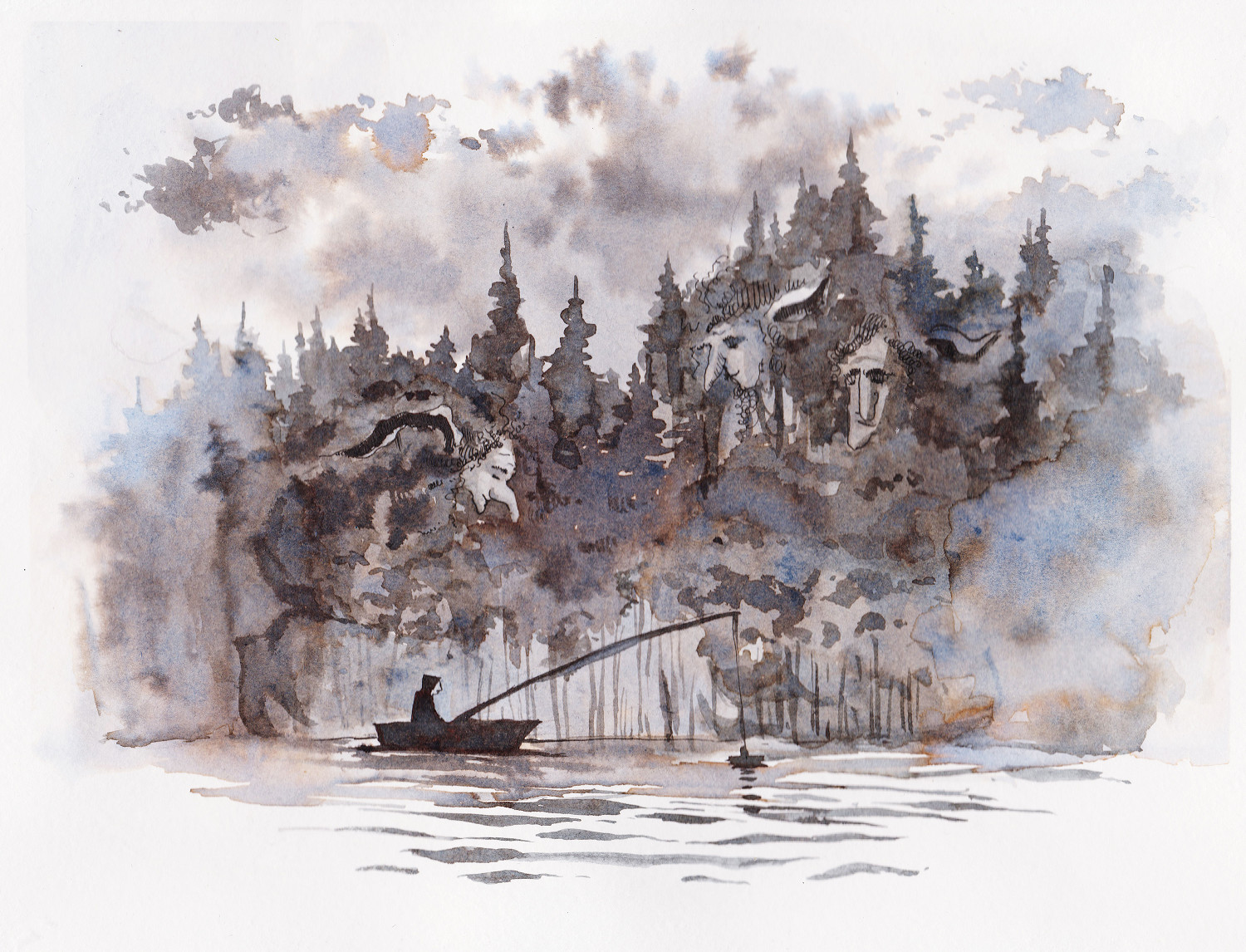 Когда стало смеркаться, мы смотали спиннинги и пошли обратно к лагерю. Проходя сквозь подлесок, мы заметили странную перевернутую лодку, спрятанную кем-то метрах в десяти от берега. Она была явно старая, но хорошо просмоленная и совершенно аспидно-черная, того глубокого цвета, что при взгляде на него кажется, что ты проваливаешься в абсолютную тьму. От нее веяло чем-то нехорошим, даже воздух вокруг нее казался более густым и каким-то маслянистым. Он словно клубился, подобно дыму над обугленной головней.