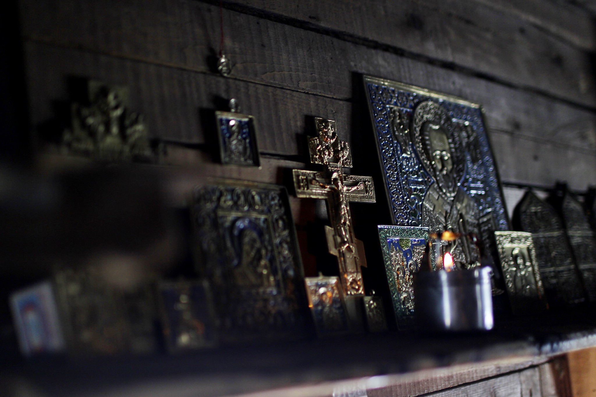 Первое лето мы к ним в гости ходили. Всей семьей с ночевыми, палатку нам поставят с печкой железной. Молились мы в открытую. Мы им картошку, орехи. Они нам лопатки, топоры, гвозди, материал — красный сатин. Еще рукава есть у меня от него, того сатина.