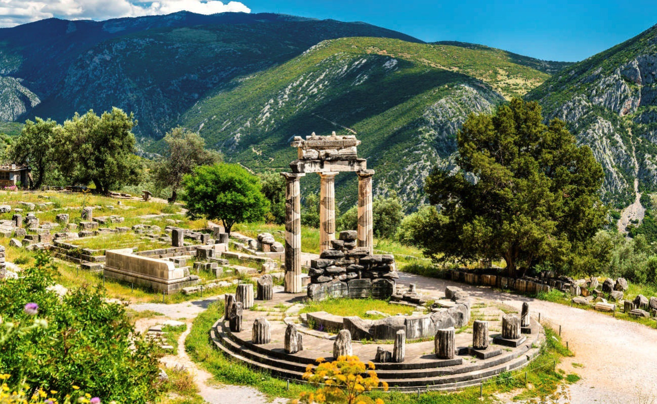 Святилище Аполлона в Дельфах много веков считалось в античном мире самым авторитетным местом, где предсказывали будущее и объявляли волю богов. Путь туда не столько долог (хотя от Афин до Дельф 200 км, а от Тризина – все 300), сколько труден: часть проходит по горному серпантину, ведь святилище расположено на высоте 700 метров над уровнем моря, на склоне горы Парнас. Сейчас это удобная асфальтированная дорога, а три тысячелетия назад она сама по себе была испытанием перед получением пророчества.