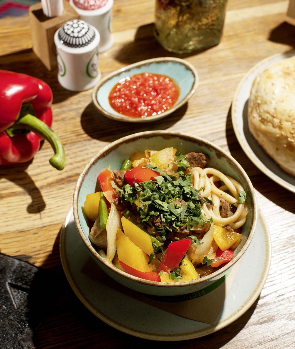 На крупнейший в Центральной Азии рынок в древнем Кашгаре, в городе-оазисе на северо-западе Китая, каждую неделю приезжают торговцы, чтобы купить или продать скот, ткани, травы и специи. Когда сделки завершены и наступает время обеда, голод традиционно утоляют сытным лагманом. В гигантских котлах, установленных прямо на улице под навесами, кипят бульон и соусы. Готовят блюдо в основном пожилые мужчины в тюбетейках. Один повар непрерывно замешивает тесто на лапшу, а затем разбирает его на жгуты и раскручивает каждый, словно скакалку, пока из толстого куска тот не превратится в тонкие нити. Это тяжелый физический труд. Другие повара следят за варкой бульона и соусов. Потом собирают, словно конструктор, все элементы в единое блюдо. Подают готовый лагман в двух пиалах: в первой — бульон с мясом, во второй — лапша с соусами.