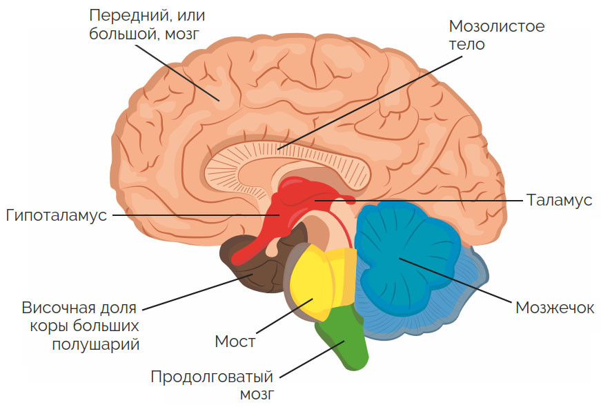 Обслуживать обоняние – это исторически первая функция не только коры, но и всего переднего мозга, того самого, где у человека полушария. Именно этим и поныне занимается передний мозг у круглоротых – самых примитивных известных позвоночных, правда, их передний мозг еще не разделен на полушария и не имеет коры. Входящие сигналы от всех органов чувств человека, кроме обонятельного, приходят в кору больших полушарий по длинной цепочке. Ее замыкает таламус, расположенный не в переднем мозге, а в промежуточном. И только сигналы от обонятельных рецепторов приходят в кору напрямую, а не через таламус. Так что это наше наследие тех времен, когда весь передний мозг был всего лишь устройством обработки обонятельной информации. Поведением же управлял в основном средний мозг, как у современных круглоротых.