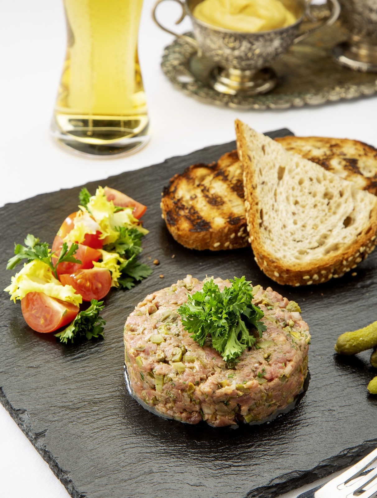 В Германии тартар из сырого мяса — блюдо повседневное. Согласно классическому рецепту его замешивают из мелко нарубленной охлажденной говядины, добавляя репчатый лук, сырой яичный желток, горчицу и маринованные огурцы, а подают на щедрых ломтях фермерского хлеба или с картофелем фри. Традиционно блюдо готовили из вырезки, но сейчас в моде лозунг «Ешь корову целиком», и повара все чаще используют альтернативные отруба, например кострец, отличающиеся еще и ярким вкусом.