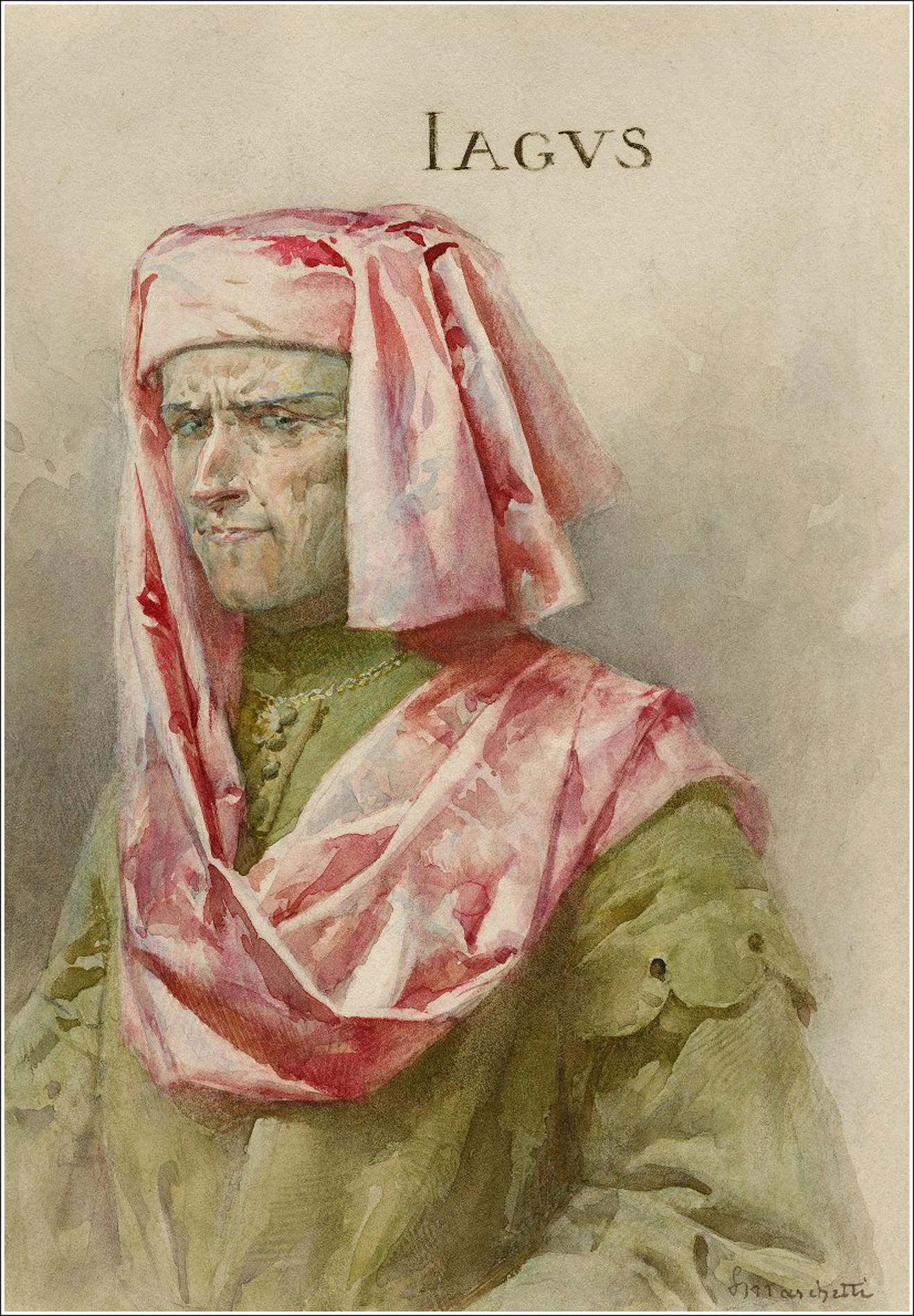 Посчитано, что Яго отведено 1097 строк – больше, чем любому другому персонажу, включая самого Отелло. Действительно, если главные герои то заходят, то уходят по своим делам, то Яго царит на сцене постоянно, плетя заговор. При этом он готов объяснять каждому встречному мотивы своих поступков.