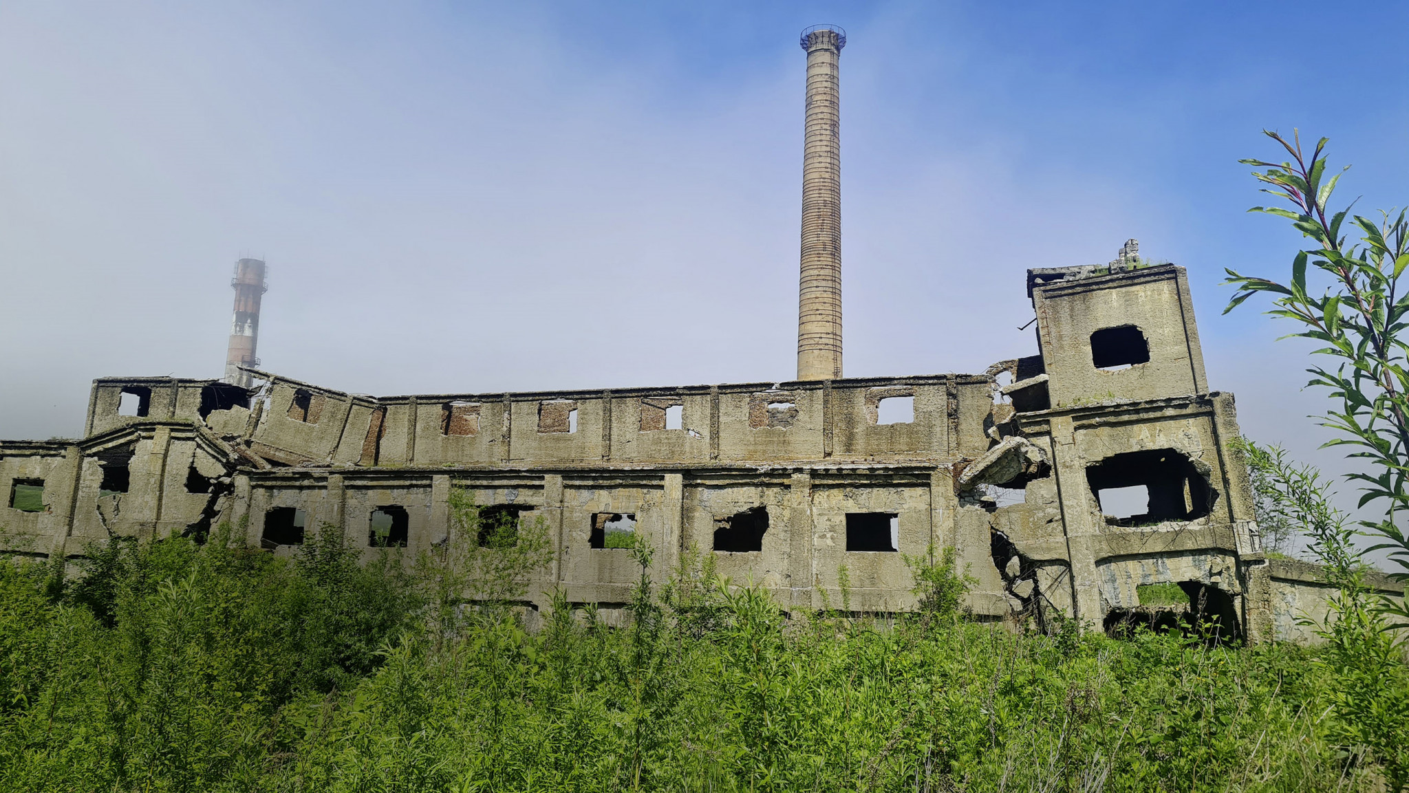 Выехав на машине из города, мы пересекли по мосту речку Макаровку. Свернув на проселок, поравнялись с развалинами целлюлозно-бумажного завода. «Бум», как его называют в Макарове, когда-то был самым современным промышленным предприятием на Карафуто, поражал своими размерами и дорогостоящим великолепным оборудованием. Завод был построен в 1923–26 гг. компанией «Фудзи сэйси кайся» – и продолжал эксплуатироваться и после ухода японцев. Закрыли его по нерентабельности уже в 1990-х, официально поставив «на консервацию». С тех пор бывший «Бум» постепенно разрушался и ветшал. Однако его руины до сих пор наиболее заметный объект в местности между городской чертой и начинающимися к северу сопками, поросшими лесом.