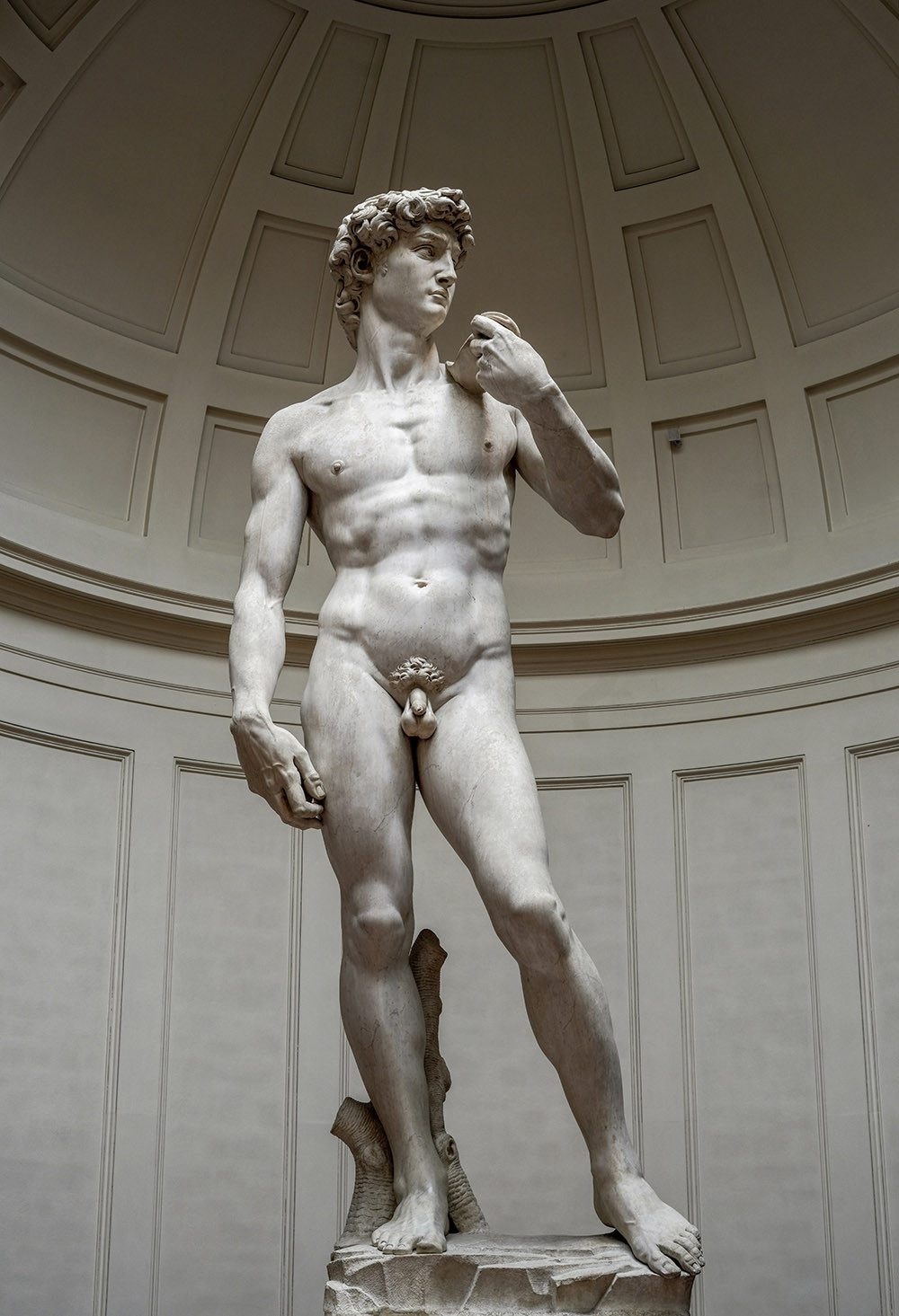 Знаменитая статуя была открыта для публики на площади Синьории во Флоренции 8 сентября 1504 года. Скульптор работал над «Давидом» почти три года. Он использовал глыбу мрамора, уже «испорченную» другим ваятелем. Высота статуи с пьедесталом 5 м 17 см. С 1873 года на площади стоит копия «Давида», а оригинал находится во флорентийской Академии изящных искусств.
