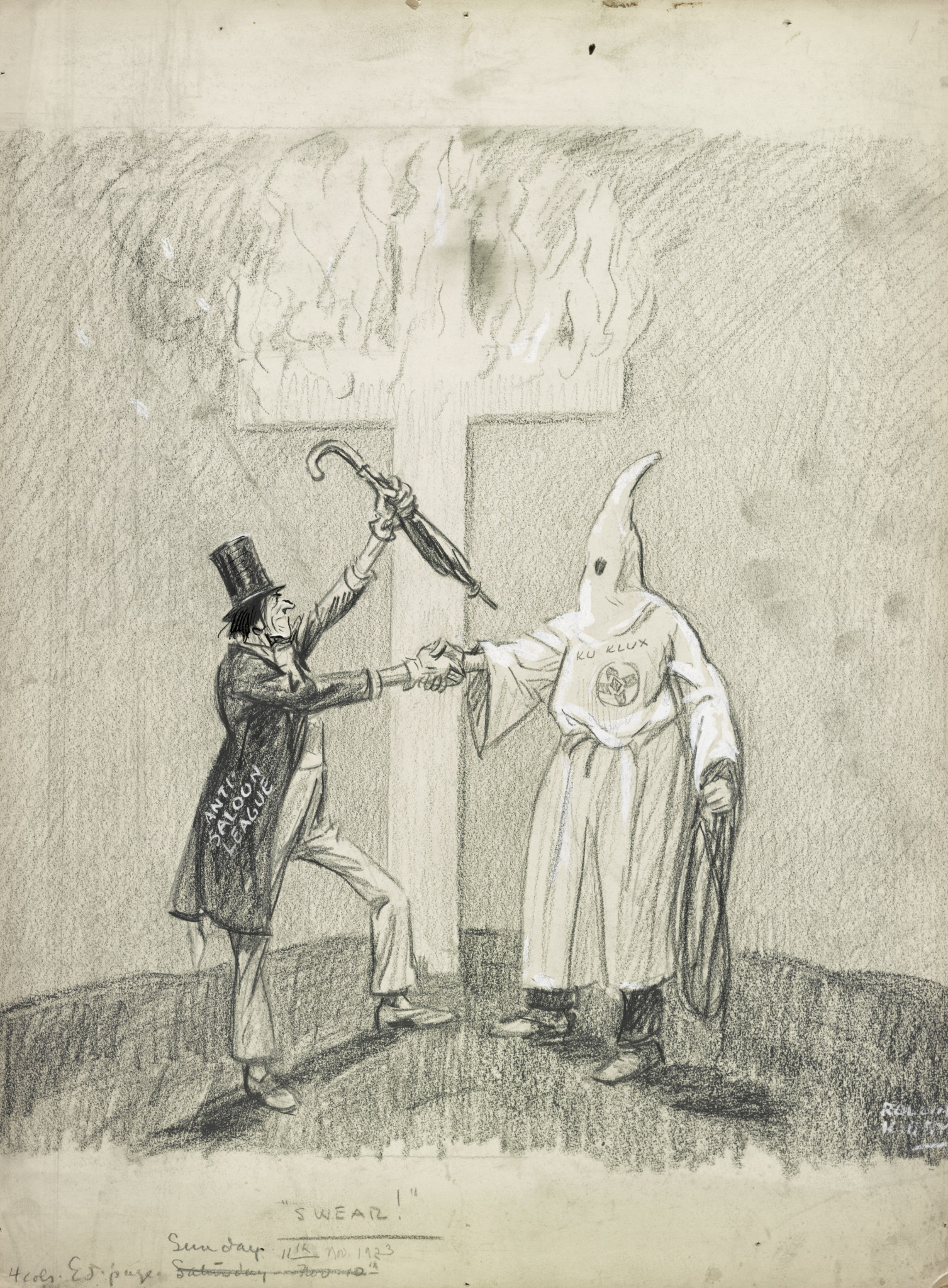 Тайную расистскую организацию создали 24 декабря 1865 года шесть ветеранов Гражданской войны с проигравшего Юга. Эти люди начали терроризировать освобожденных чернокожих, стремясь не допустить равенства между бывшими рабами и белыми гражданами. Инициативу подхватили и другие южане. В ответ на отмену рабства и попытки правительства запретить расовую дискриминацию в штатах Юга постепенно начали вводить так называемые законы Джима Кроу, легализовавшие сегрегацию «цветных».