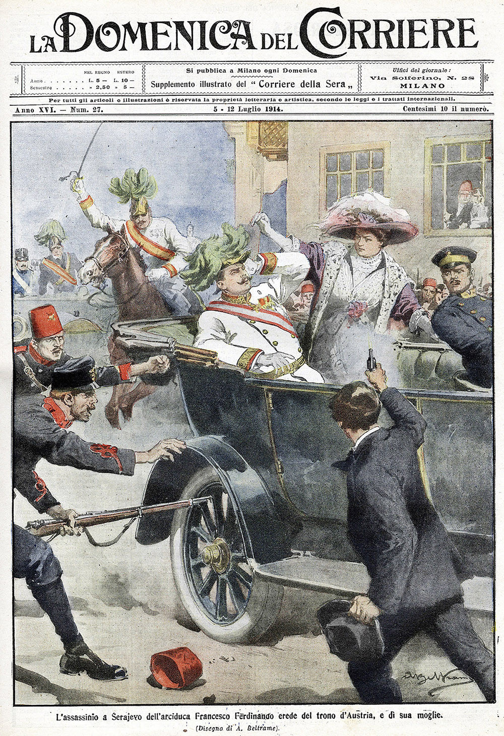 Наследник австро-венгерского престола, эрцгерцог Франц-Фердинанд и его супруга, прибывшие 28 июня 1914 года в столицу Боснии, были застрелены в машине. Убийство совершил Гаврило Принцип, член революционной организации «Молодая Босния», выступавшей за отделение южнославянских территорий от Австро-Венгрии и присоединение к Сербии. Случившееся стало поводом для европейских стран, между которыми накопились противоречия, предъявить друг другу ультиматумы, и в результате началась Первая мировая война.