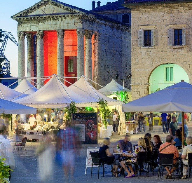 Римляне, знавшие толк в удовольствиях, оценили потенциал Истрии, когда в 177 году до н. э. отвоевали полуостров у местных племен. Так в Римской империи появилась область Истрия, а в городе Пуле — монументальные постройки, дошедшие до наших дней: амфитеатр (один из крупнейших в мире), храм Августа с классическим портиком, Триумфальная арка. В Рим из Истрии поставляли вино и оливковое масло. По одной из легенд, каштановые рощи, которые по сей день растут рядом с городом Ловран на юге полуострова, посадили римляне. Они скрестили азиатский сорт каштанов, привезенный из морских походов, с местным и получили вкусные и полезные плоды.