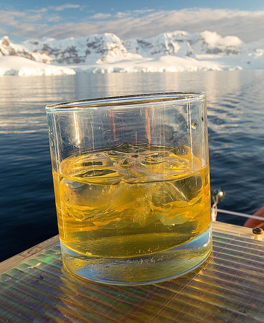 Плавающий лед что в стакане, что в море согласно закону Архимеда вытесняет столько воды, сколько весит. Поэтому при его таянии уровень воды не поднимается. Уровень океана растет не из-за таяния айсбергов, а из-за сползания ледников с суши в море. В стакане уровень жидкости тоже повышается, когда в него кладут лед.