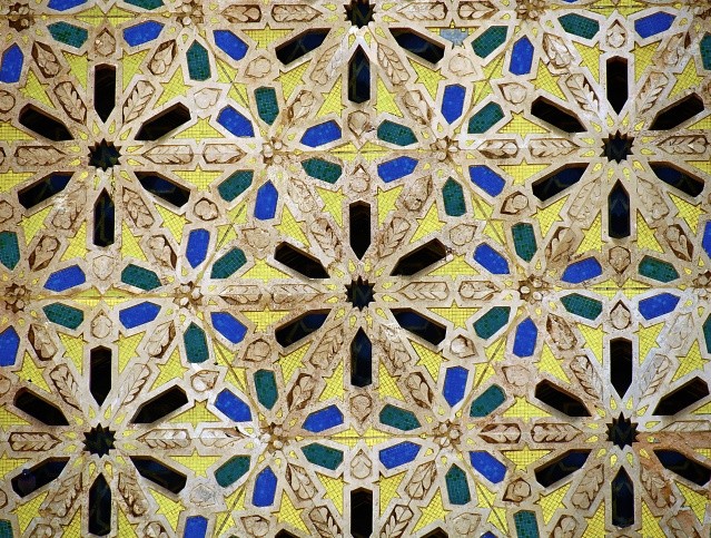 — Пол мечети сделан из золотистого мрамора и зеленого оникса. Это два цвета ислама, — объясняет профессор. — Зеленый — это благодать рая, а золотой или желтый — духовное богатство. Традиционная символика цветов в Марокко связана с религией. Для декора мечетей, в мозаиках и росписях, используют еще три цвета. Синий, который означает спокойствие, черный — цвет ночного неба и красный, защищающий от зла. Повторение орнаментов символизирует вечность.