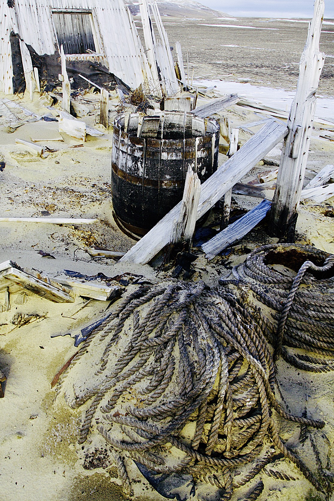 Я разгрызал кофейные зерна, которым 120 лет. Верхний слой побелел, растрескался, но внутри чувствуется вкус кофе. Пожалел, что не привез домой горсть — сварить в турке… Природа многое сохранила. Рядом с заброшенным лагерем мы видели груду нарт, прекрасно сохранившиеся каяки. У них немного подгнили каркасы, а так хоть сейчас плыви.