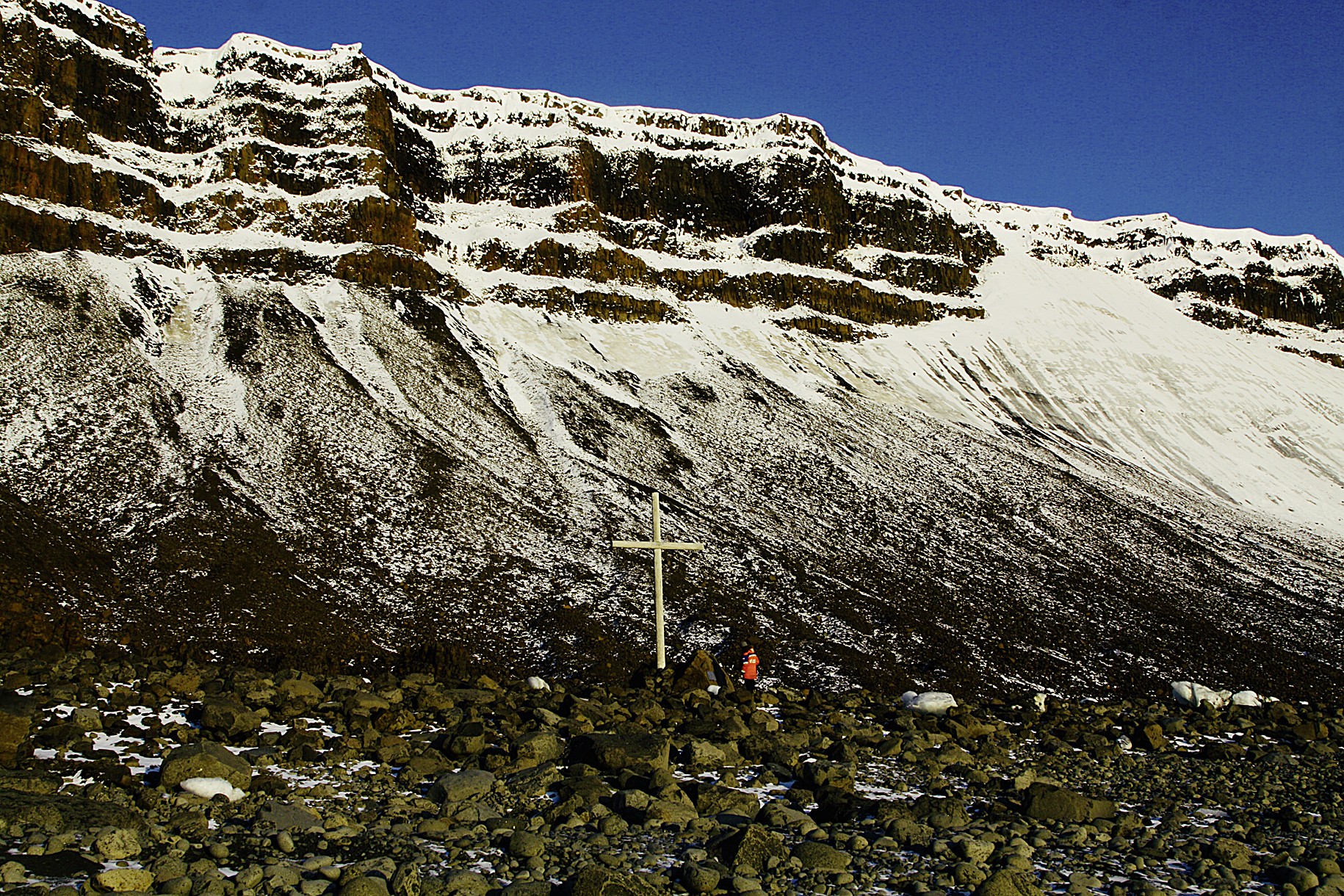Могилу не нашли, но поняли, где нужно искать. Седова захоронили в очень странном месте. Матросы оставили тело капитана на отвесном склоне, обложив камнями. Не закопаешь — вокруг мерзлота. И когда мы вышли на это место, поняли, что склон постоянно медленно сползает в море. Скорее всего, тело весной унесло в океан. Если не брать в расчет голодных медведей. Кстати, недалеко от могилы Седова сотрудник национального парка «Русская Арктика» обнаружил череп медведицы с радиоошейником. Она пропала два года назад, сигнал с ошейника пропал в этом самом месте. Возможно, крупный медведь-самец догнал самку с детенышами и съел ее. Поэтому версия с медведем очень даже правдоподобна.
