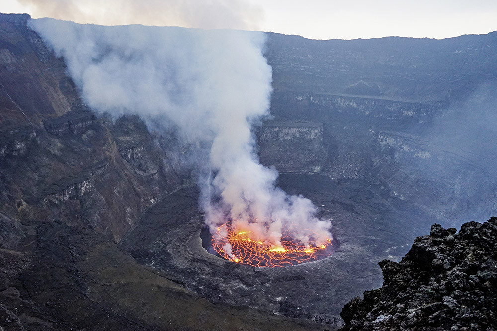 Вулкан Ньирагонго находится в горах Вирунга недалеко от озера Киву к западу от границы с Руандой. Ширина его кратера составляет примерно 2 км, а внутри находится озеро лавы, считающееся одним из крупнейших в мире. Последнее извержение Ньирагонго произошло 22 мая 2021 года.