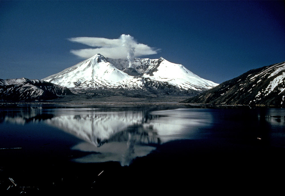 Активный стратовулкан расположен в Каскадных горах в штате Вашингтон в 150 км к югу от Сиэтла. В 1980 году вулкан произвел 5-балльное извержение, в результате чего его высота уменьшилась вдвое. Этому событию в США посвящен ряд художественных и документальных фильмов, а также симфония композитора Алана Хованесса.
