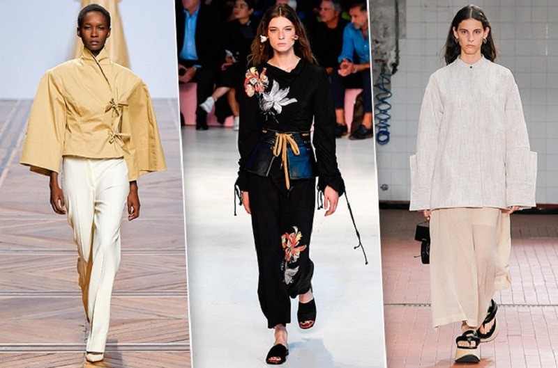 Приветствуется свободное облегание и мягко подчеркнутая талия. Идея: кимоно гейши или кимоно для борьбы, а также восточный халат. Есть противоположный вариант – полное отсутствие талии и силуэт, приближающийся скорее к овалу. Отдельной линией выделены платья беби-долл и прочие «игры в девочку», присущие японской культуре. Широкие рукава, широкие штанины. Свободные рубашки и жакеты. Но при этом возможна и узкая юбка, в некоторой степени ограничивающая движения.