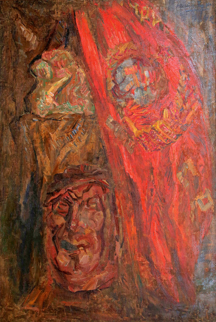 Чирков, сын сельского священника, был человеком глубоко верующим и воцерковленным — мы видим это и по его «Автопортрету с Евангелием на голове», и по портретам священнослужителей, написанным в первые годы войны, когда в отношении Церкви были сделаны некоторые послабления. Но точно таким же памятником советского религиозного искусства выглядит его «Красное знамя» (1942) — натюрморт с брошенным впопыхах знаменем, которое художник подобрал во дворе дома на Масловке 16 октября 1941 года — в дни всеобщей московской паники и бегства. Главной картиной в революционном цикле Голополосова была «Борьба за знамя» — по иронии истории знамя досталось истинному христианину Чиркову. Все это — и архиереи, и спасенное знамя — образцы чистейшего, подлинного экспрессионизма, замешанного — в полном соответствии с педагогической программой Чиркова, на венецианцах, Рембрандте, Ван Гоге и Сурикове. В Третьем рейхе такое искусство сходу объявили бы «дегенеративным», в СССР, попадись оно на глаза разнообразным бескиным и кеменовым, немедленно навесили бы ярлык «формализма» с каким-нибудь опасным расширением в виде «реакционных религиозно-мистических настроений». У Теодора Адорно есть один пассаж, из которого следует, что экспрессионизм, крик ужаса, боли, отчаяния и бессилия, это единственное, что остается искусству после Освенцима. «За фасадом эпохи» говорит нам о том, что и во время Освенцима экспрессионизму находится место — как тому человеческому, которого не бывает слишком.