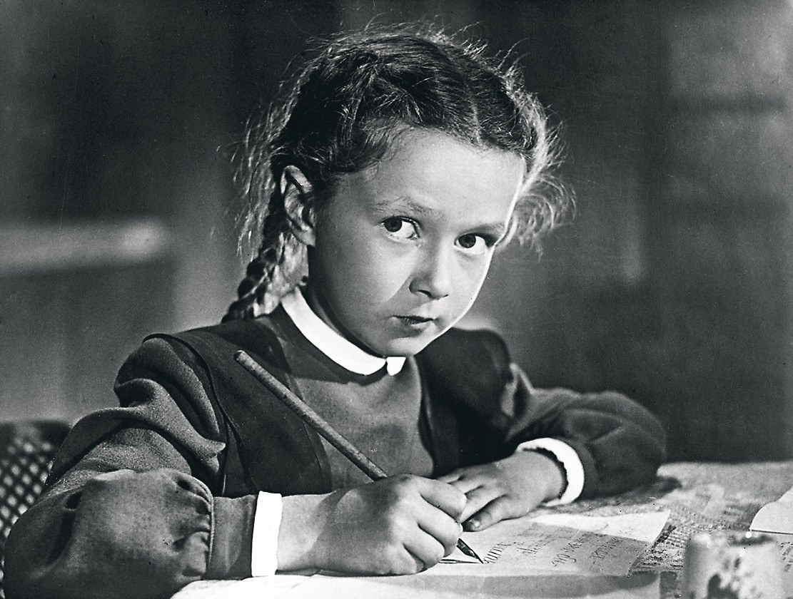 Если история в детском кино воплощает динамику, выход в большой мир, то школа — статику, особое замкнутое пространство, в котором устанавливаются законы детского существования. Отдельные фильмы о школе появлялись и раньше, но школьный фильм как жанр возникает только в послевоенном кинематографе. Его принципы устанавливают две картины 1948 года: для малышей — эталон «малого большого стиля», «Первоклассница» Ильи Фрэза, для подростков — более аляповатый «Красный галстук» Владимира Сухобокова и Марии Сауц. Дети перестают быть маленькими взрослыми и вновь становятся детьми — не героями, а учениками, объектами воспитания и контроля. В застывающем, иерархизированном мире позднего сталинизма им отводится свое место.