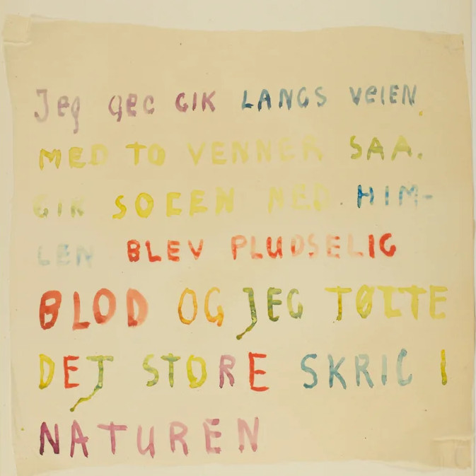 1. Вначале «Крик» был текстом. В январе 1892 года, во время зимовки в Ницце, Эдвард Мунк сделал такую запись в дневнике: «Я прогуливался с двумя друзьями — солнце клонилось к закату. Меня охватила тоска. Вдруг небо стало кроваво-красным. Я остановился и, обессиленный, прислонился к перилам — кровь и языки пламени взметнулись над черно-синим фьордом и городом. Друзья продолжали свой путь, а я застыл на месте, дрожа от страха, и ощутил ужасающий бесконечный крик природы». К этому ощущению Мунк возвращался на протяжении всей последующей жизни: он создал девять разных вариантов этого текста, в том числе и два стихотворных, часто цитировал их на полях этюдов и эскизов, а в 1930-х, продавая пастельную версию «Крика», прикрепил к ней написанную от руки последнюю строфу стихотворения.