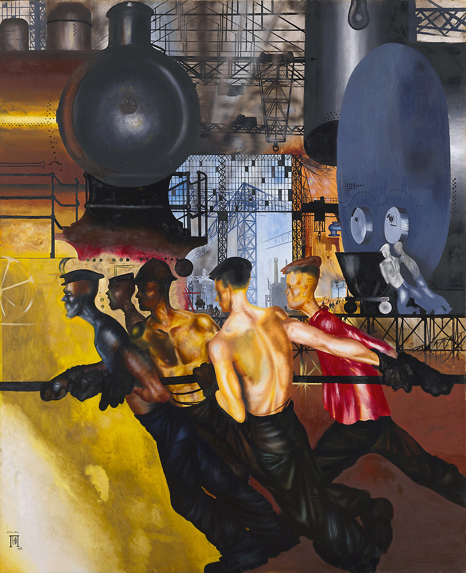 Позднесоветскому зрителю — не только и не столько посетителю самой Третьяковки, сколько обладателю альбомов и наборов открыток с репродукциями самых известных картин галереи — были хорошо знакомы по крайней мере три работы Юрия Пименова. Во-первых, большой, монументальный, готовый развернуться во фреску холст «Даешь тяжелую индустрию!» (1927) с группой стройных мускулистых сталеваров, застывших в балетном аттитюде перед вырывающимся из недр мартена пламенем на фоне красивого конструктивистского коллажа из станков, печей, поршней, вагонеток и вантовых конструкций завода «Серп и молот». Картину по результатам творческой командировки на завод Пименов писал для выставки к первому юбилею Октябрьской революции, на которой он вместе с Александром Дейнекой, другом и коллегой по ОСТу, Обществу станковистов, завоевали славу ведущих специалистов по производственной теме в советской живописи. Во-вторых, «Новая Москва» (1937), холст размером поменьше, похожий на кадр из цветного кинофильма: живописец-оператор устроился на заднем сиденье кабриолета, чтобы снять со спины нарядную даму за рулем, едущую по широкой московской улице, Охотному Ряду, где на старорежимные малоэтажные особняки наступает громадье сталинских высоток. Картина, написанная к всесоюзной выставке «Индустрия социализма», на уровне сюжета показывает успехи социалистического строительства — и в буквальном смысле, воспевая столичное строительство и архитектуру, и в фигуральном, воспевая социальное переустройство и женскую эмансипацию, ведь образ автомобилистки отсылает к такому крупному пропагандистскому мероприятию, как первый женский автопробег «Москва — Малые Каракумы — Москва» 1936 года, посвященный популяризации новой Конституции СССР. Но на стилистическом уровне мы, напротив, видим не успехи, а полное ренегатство по сравнению с «Тяжелой индустрией»: критик 1920-х годов, наверное, отметил бы, что пролетарская нововещественная графичность и плакатность (а композиция «Даешь тяжелую индустрию!» позднее действительно была переработана в плакат «Все на смотр!») уступила место буржуазной салонно-импрессионистической живописности,— если бы, конечно, критику 1920-х годов дали право голоса в 1937-м. И это стилистическое ренегатство находится в изумительной гармонии с тихой социальной контрреволюцией, сменой элит и общим обуржуазиванием сталинской бюрократии. И наконец, третьим третьяковским хитом Пименова была «Свадьба на завтрашней улице» (1962), картина скромного малоголландского формата, вполне подходящего для комнаты в хрущевке: молодожены, легко и уверенно идущие по дощатому настилу над строительной грязью навстречу своему семейному счастью в отдельной квартире со всеми удобствами, шлют комсомольский привет и всему будущему оттепельному — шагающих по Москве июльских дождей — кинематографу, и хрущевским реформам в области жилищного строительства. Сюжет, достойный кисти мастеров сурового стиля, трактован во все той же слащаво-импрессионистической манере образца 1937 года, но Пименов не то чтобы убрал руку с пульса времени, а просто был уже староват, чтобы, задрав штаны, бежать за комсомолом.