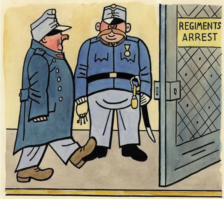 Так и становятся шпионами, ничего особенного. Но вахмистр в стельку пьян, а следующий в иерархии упырь, прочитав этот рапорт, с раздражением осознает, что, дав делу ход, рискует сам оказаться в роли клоуна. Так Швейк оказывается нежеланным гостем за каждой решеткой, любая тюрьма рано или поздно торопится от него избавиться. Зверский оскал карательного правосудия очень боится только одного — перестать выглядеть зверским.
